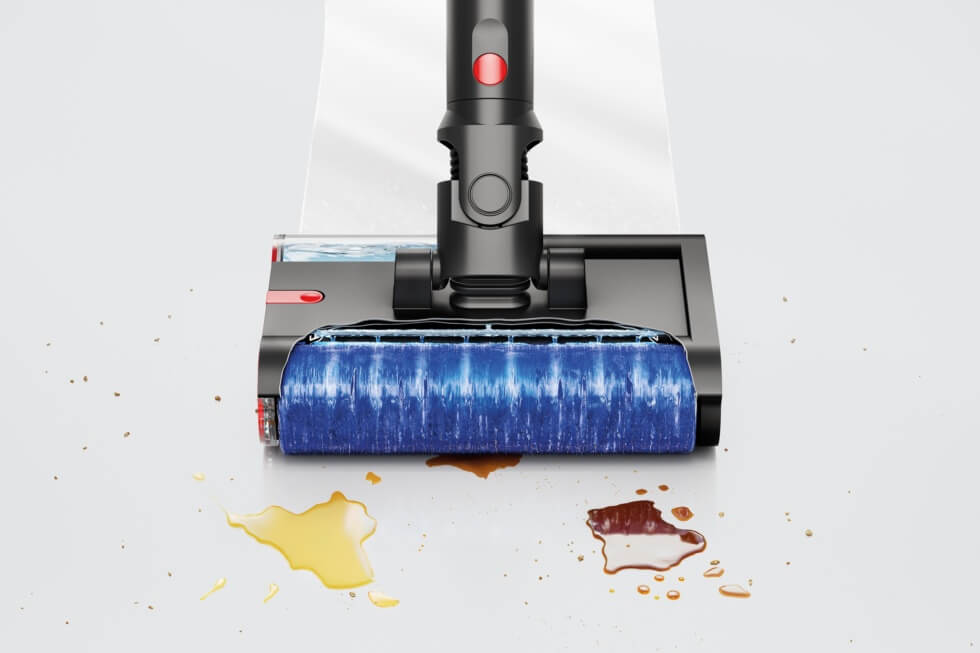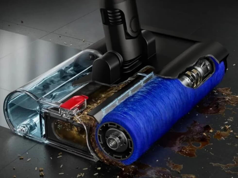 Unlike its vacuum cleaner counterpart, all the crucial mechanical components are in the cleaning head. Special chambers within hold a clean water reservoir, a roller brush, and a dirty water tank. The roller brush packs dense microfibers and rotates at a rate of 650 rpm.