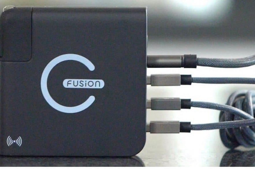 The E-Fusion is “the only charger you’ll ever need.” It provides wireless and cable charging and functions as a portable power bank.