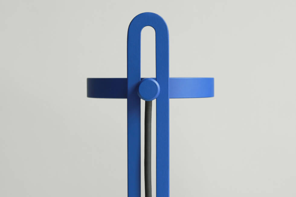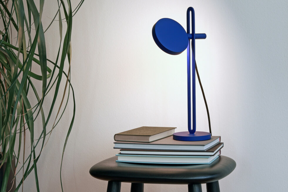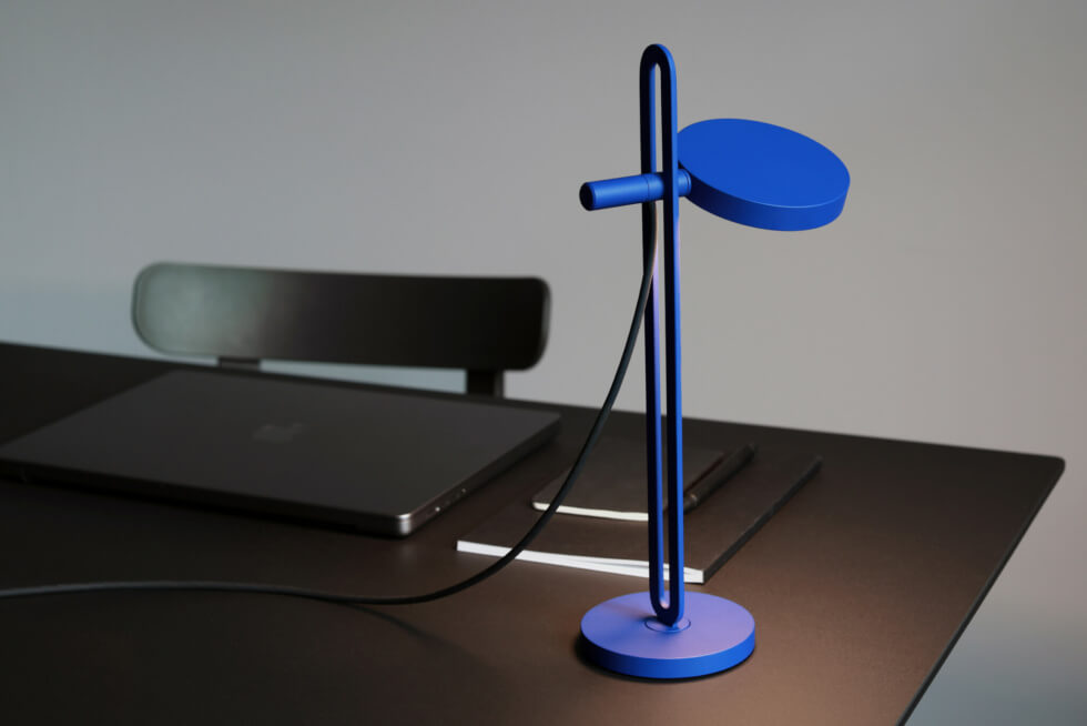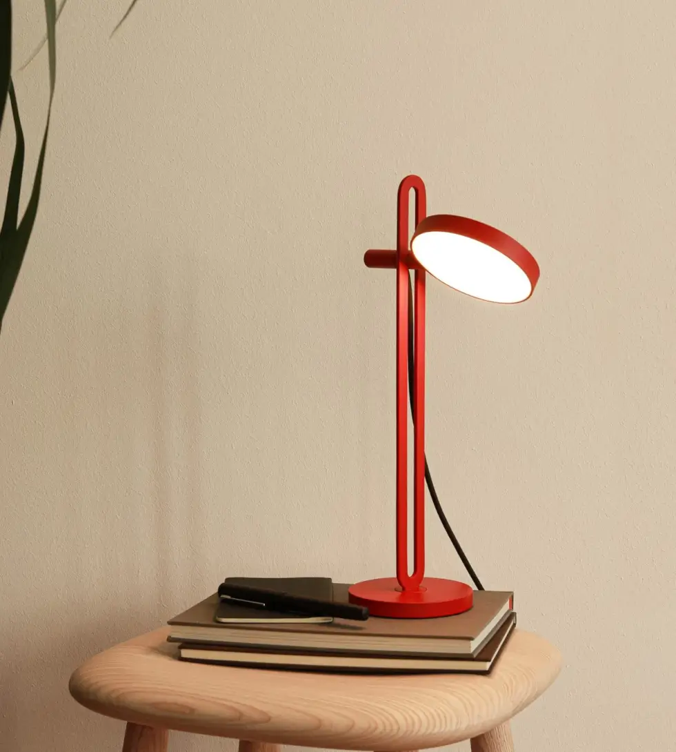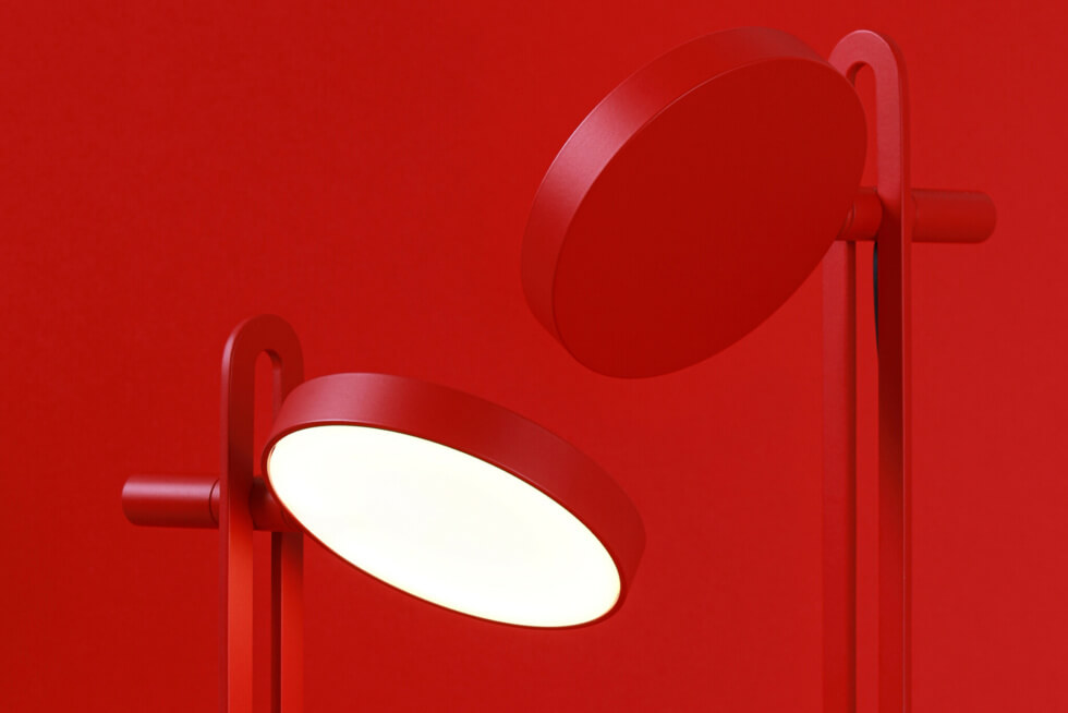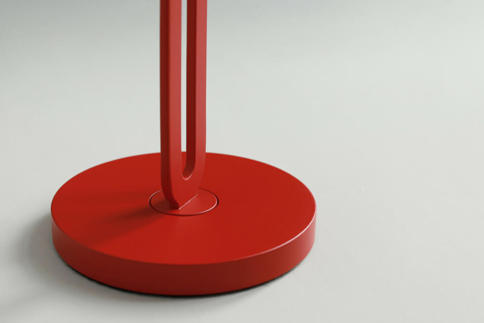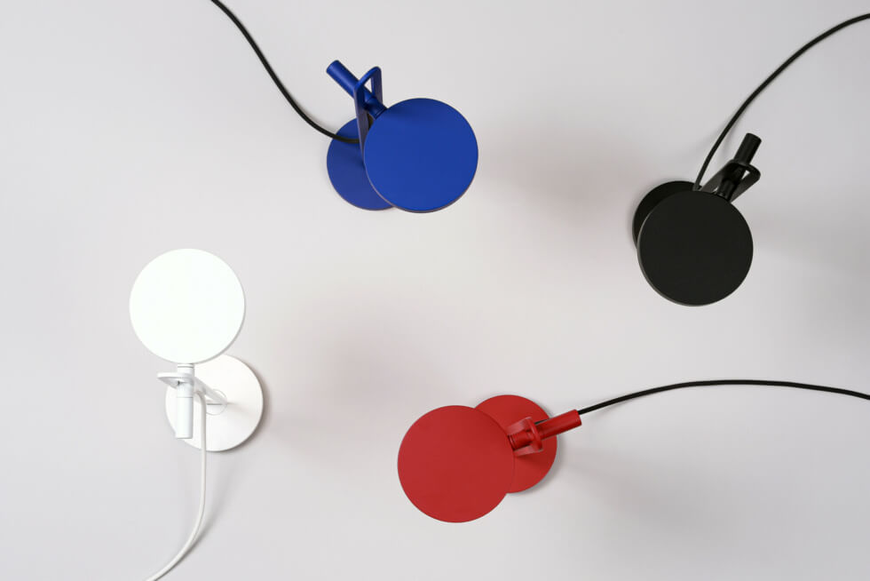 It is machined from powder-coated aluminum in four matte colors. These include red, black, white, and blue. Meanwhile, the shade is made from acrylic glass for soft and uniform light.