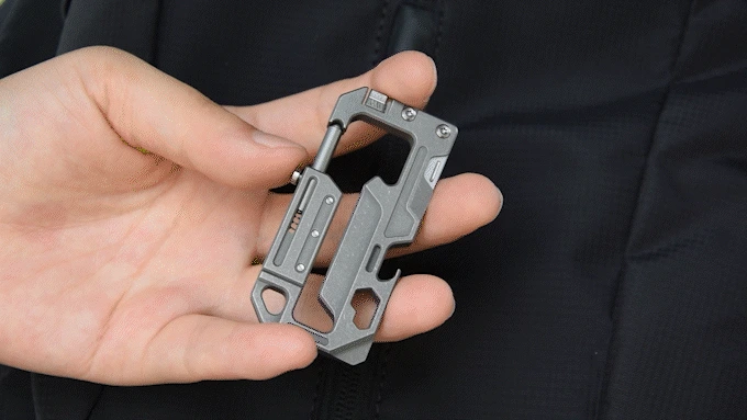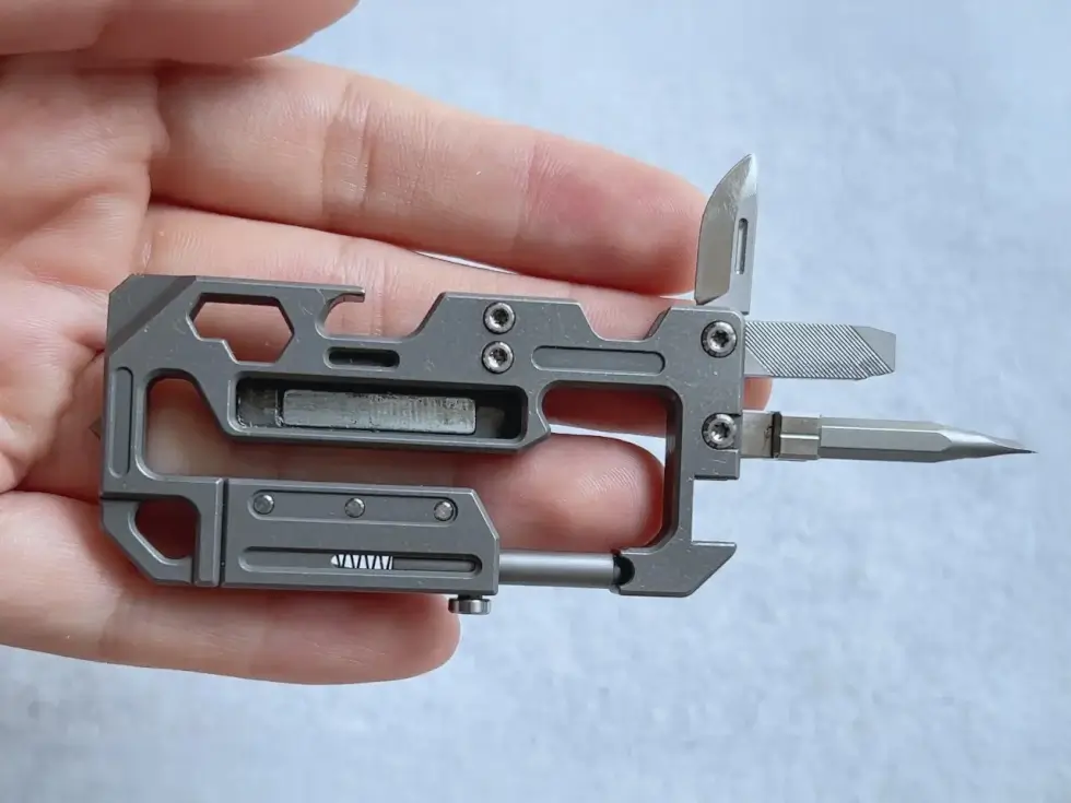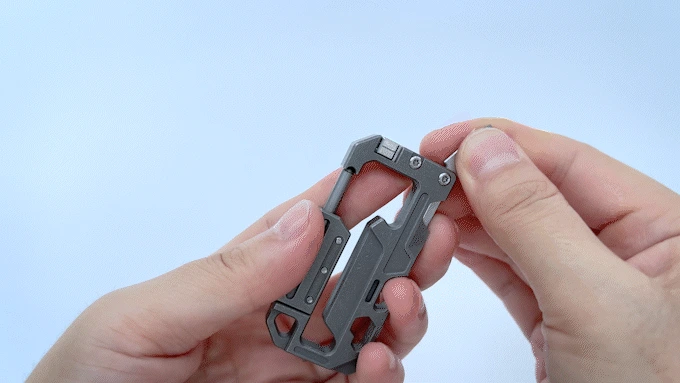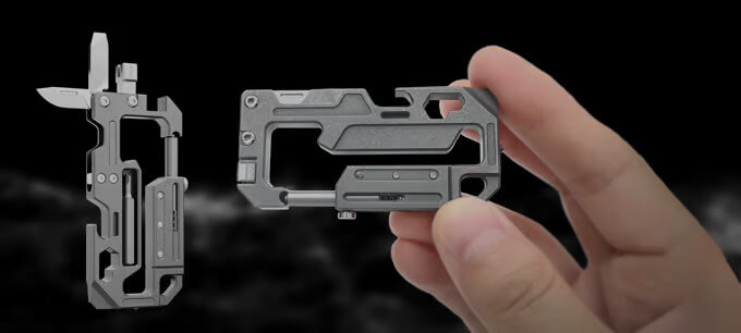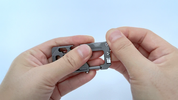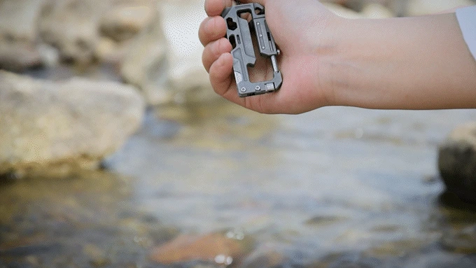 This carabiner smartly incorporates an amazing 12 tools in its compact frame that’s roughly the size of an AirPods case. It has the tools you need for camping, DIY fixes, survival, and more. There’s a sharp folding knife made from D2 steel that can cut, slice, or handle outdoor tasks. Sharing storage with the knife at the top is a thin flathead screwdriver that also doubles as a file.