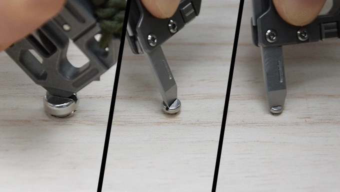 There’s also a bottle opener, a standard must-have for EDC enthusiasts, and hex wrenches in two common sizes. In case of emergency, the tungsten steel tip at the tail can easily break glass and make marks on both rocks and metal sheets. For convenience, this kit also has a high-magnetic bit storage compartment and a foldable bit seat.