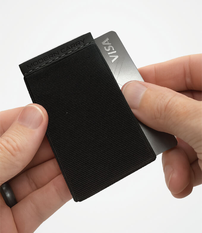 Eclipse still offers dual card access from either side and is still very slim and minimalist. It boasts a durable construction built to withstand years of use and abuse. The elastic allows for multiple card carry up to 12 cards without adding unnecessary bulk.