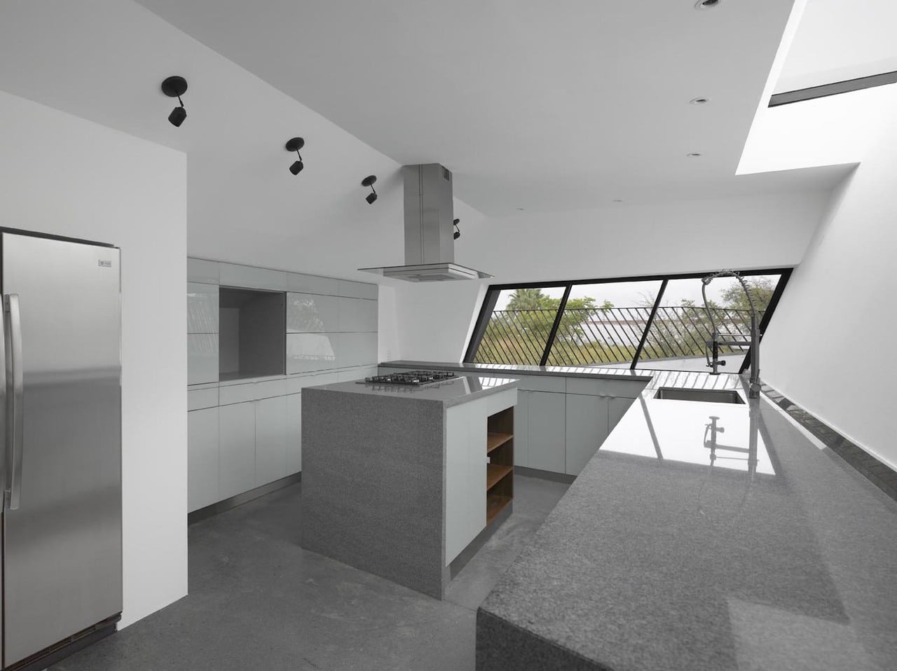 This complex evaluation resulted in a total synthesis of seemingly disparate parts. That’s most evinced by the house’s linked slabs and variable beams that “speak” with the environment while seeking mutual stability.