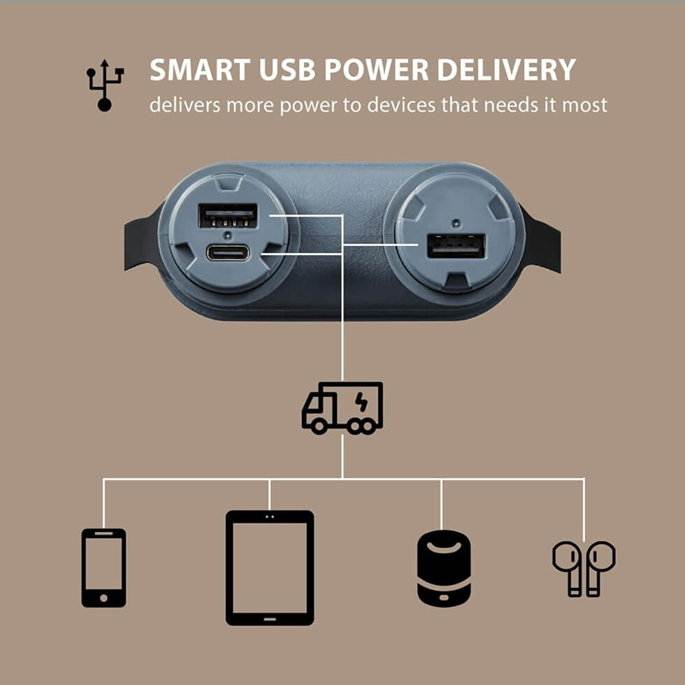 ELECOM’s NESTOUT also has an auto-shutoff feature to help save battery life while indicator lights on the back exterior help monitor battery capacity and they are easily visible even in bright daylight. This charger also has smart power delivery that automatically detects the energy requirements of the plugged-in devices to allocate more energy to power-hungry devices.