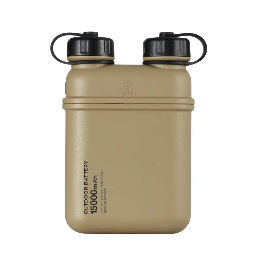 ELECOM’s NESTOUT portable charger takes on a covert design resembling that of a flask or canteen. But it’s a power bank built for serious outdoor adventures.
