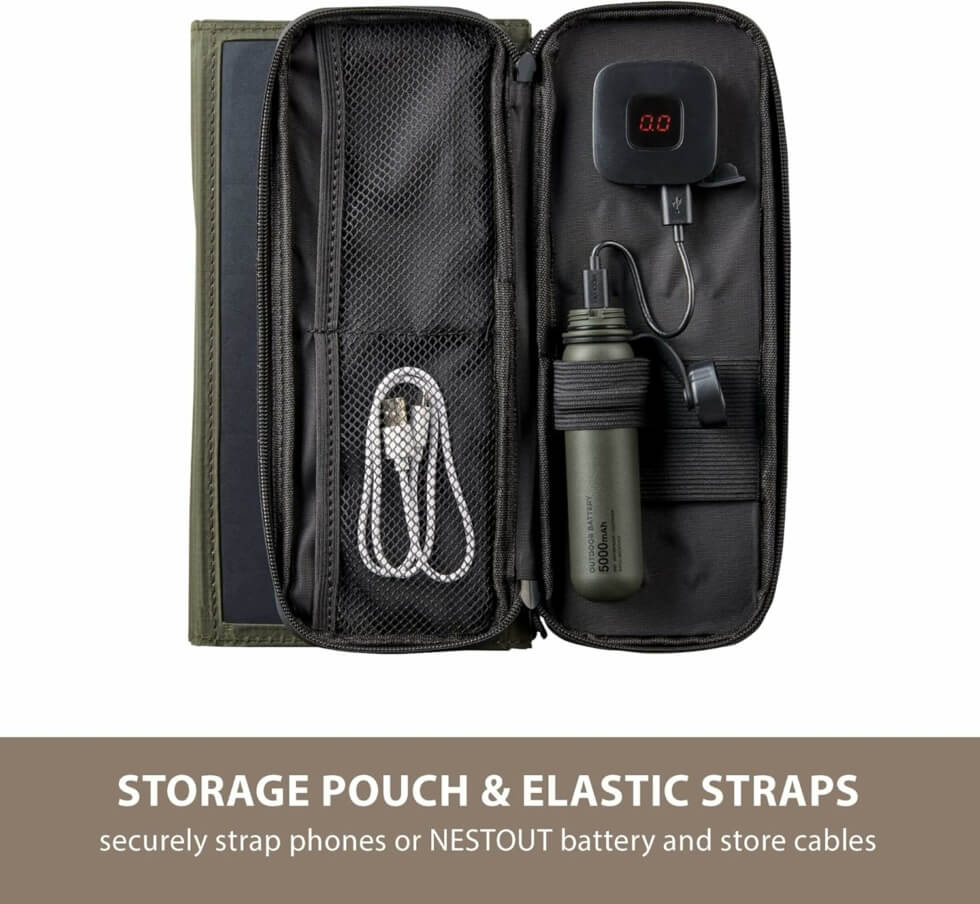 Moreover, the bag features a built-in storage pocket to store other EDC or camping essentials and durable waterproof zippers that keep the rain or moisture out. ELECOM’s NESTOUT Solar Panel folds down for compact storage inside your backpack and easily unfolds for use.