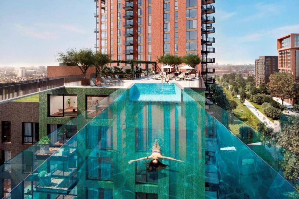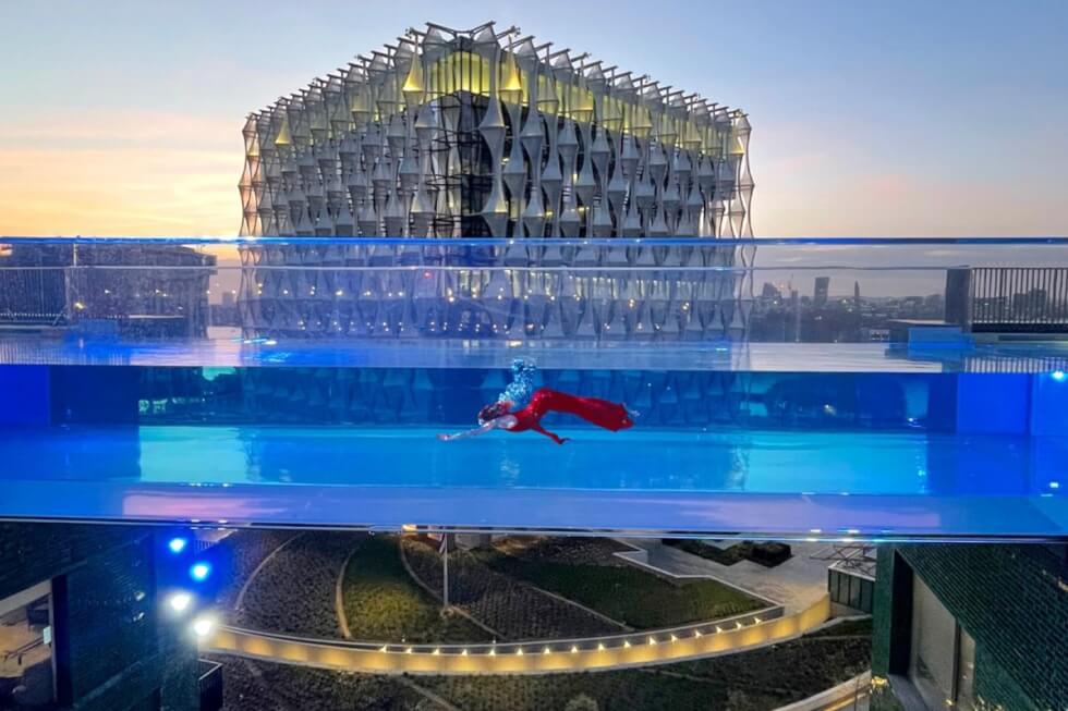 Avid swimmers, especially the fearless ones, will surely find the Embassy Gardens Sky Pool in London a treat. It offers “a swim like no other” because of its daring setup.