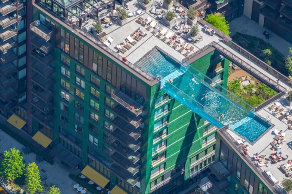 The Embassy Gardens Sky Pool is made entirely from acrylic and weighs about 375 tons. It took a team of consultants, architects, and engineers to install it between two buildings. It took meticulous precision and innovation, and suffice to say, it was not an easy feat. The construction went through rigorous testing and treatments before the pool opened to the public.