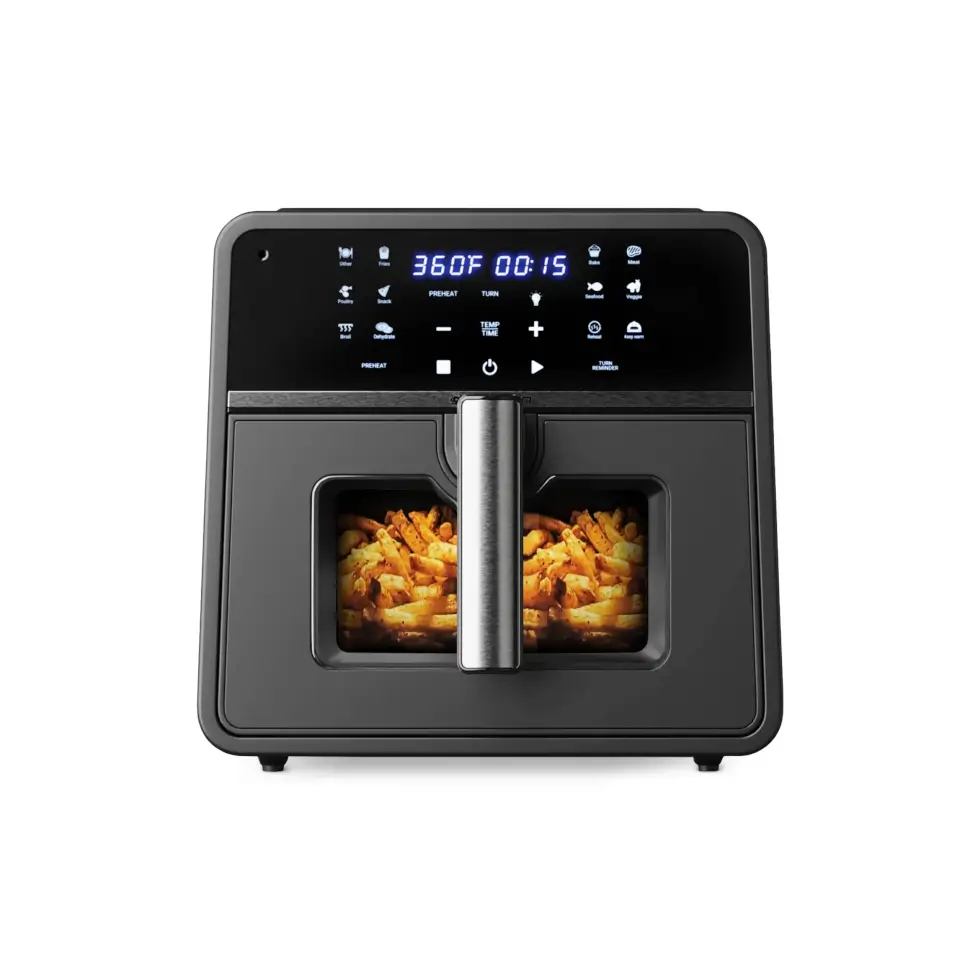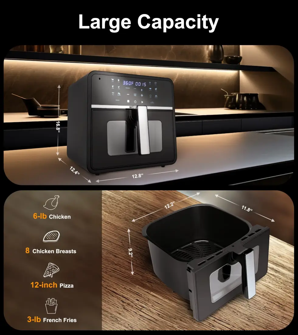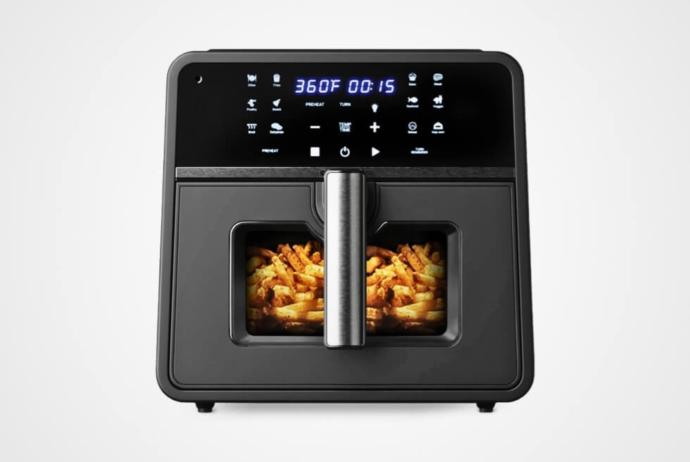 Emerson’s SmartVoice Air Fryer features over 1,000 preset voice commands with an advanced voice recognition system that detects more than 100 popular foods, including fries, chicken, salmon, and brownies. It is very user-friendly: say what you want to cook and the air fryer automatically sets the cooking time and temperature for that specific food.