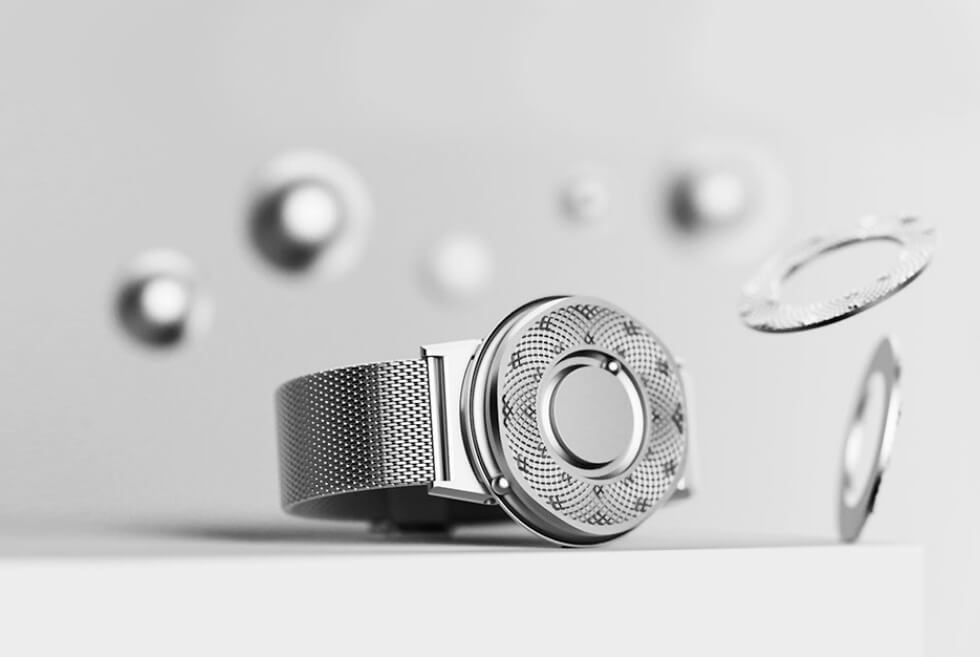It may look like an average timepiece, but it uses an intuitive complication to indicate the hours and minutes. Although you can figure it out visually, users can also do so by touch. Eone is doing away with the traditional components such as the crystal and hands.