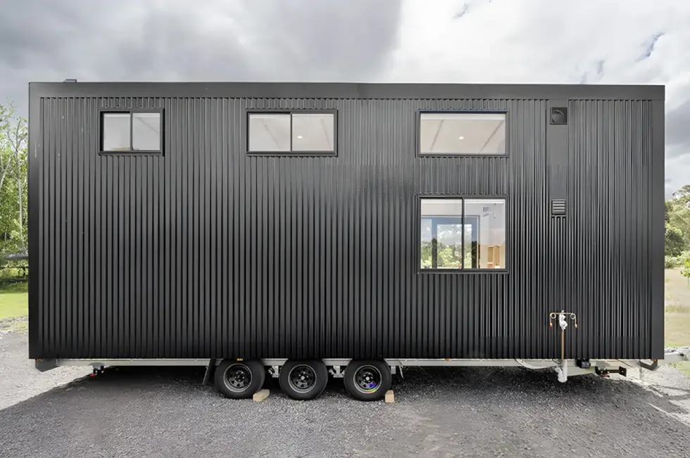 Other modern amenities include a fireplace, air conditioner, dimmable LED lights, wall fans, exhaust fans, and more. The Grevillea is also wired for 240V solar power and has an instantaneous gas hot water system. All these remarkable features fit into a length of 8.4 meters and width of 2.5 meters.