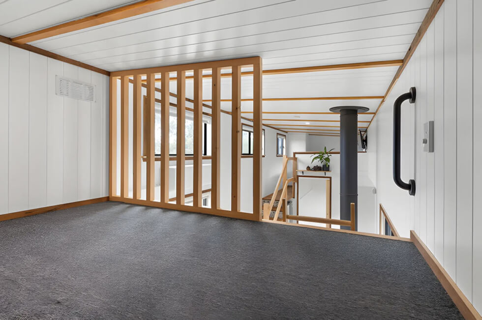 Meanwhile, the bathroom is found on the opposite end of the home and it has a full-sized shower, a vanity sink, and a composting toilet. Evergreen Homes Australia designed this home so the downstairs bedroom can double as a spacious office/studio/study.