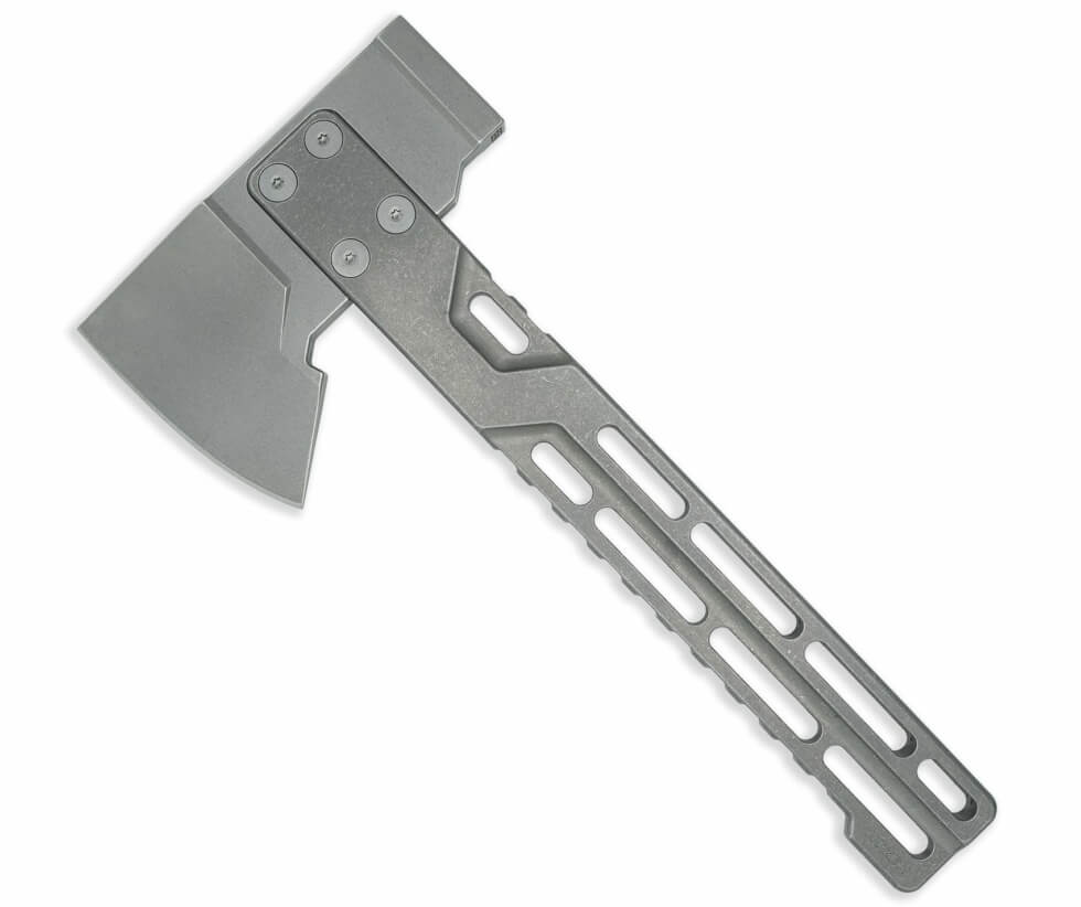 This is a fully skeletonized hatchet CNC-machined from a solid block of hardy yet lightweight 6AL-4V GR5 titanium. This robust material is known for its high strength, great corrosion resistance, and ability to dampen vibrations. As such, this axe boasts exceptional strength-to-weight ratio to ensure it performs beyond expectations. It makes the ideal tool for camping, backpacking, and more.