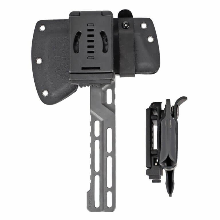 Users can include a custom paracord handle wrap or a Horween leather 2-snap sheath for storage. Likewise, a KYDEX Moulded Sheath and Molle Belt Clip with snap strap for portability. But in the box, the HYZER Titanium is fully assembled with a tempered D2 head steel measuring 0.26″ thick without axe head cutouts. It also comes with eight spare T10 bolts used to connect the head and handle and an instruction manual.