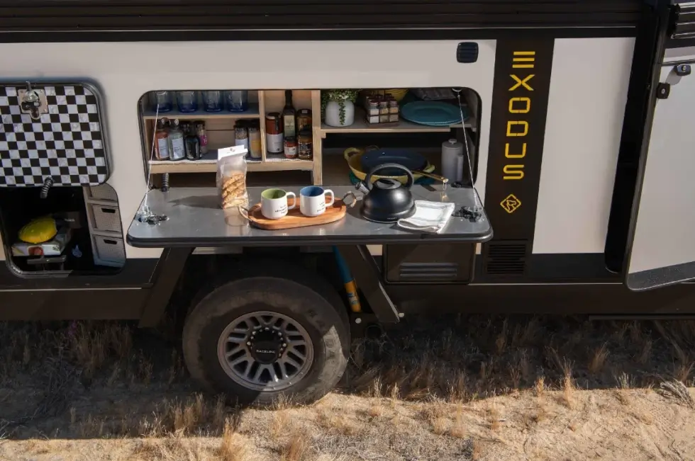 Other details shared by Exodus Rigs include a 19.5-inch ground clearance, a 70-gallon freshwater tank, two 46-gallon gray water tanks, and a five-person sleeping capacity. For its electrical setup, the CAPAX features four roof-mounted solar panels, a solar charger,  a 30A Shore Power system, and a 3,000W inverter among others.