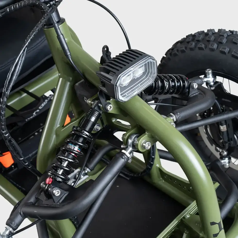 Adjustable coil shock absorbers improve handling, while fat bike tires ensure reliable traction and grip. With a large capacity 48V lithium battery, riders can stay in the action for longer. “Paired with a smarter electronic control system, maneuverability feels effortless and future-proof upgrades keep you ready for tomorrow.”