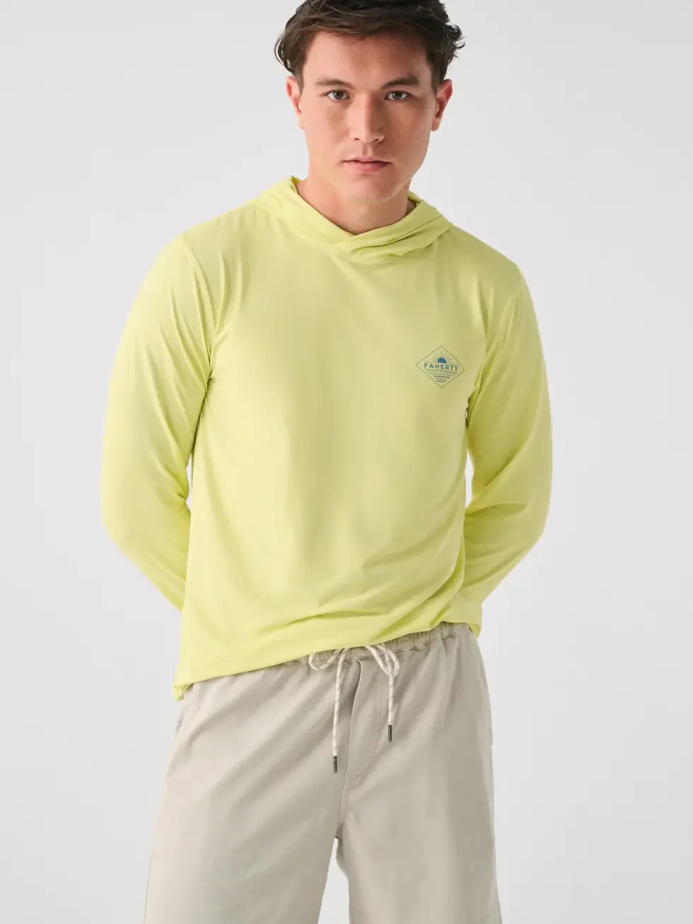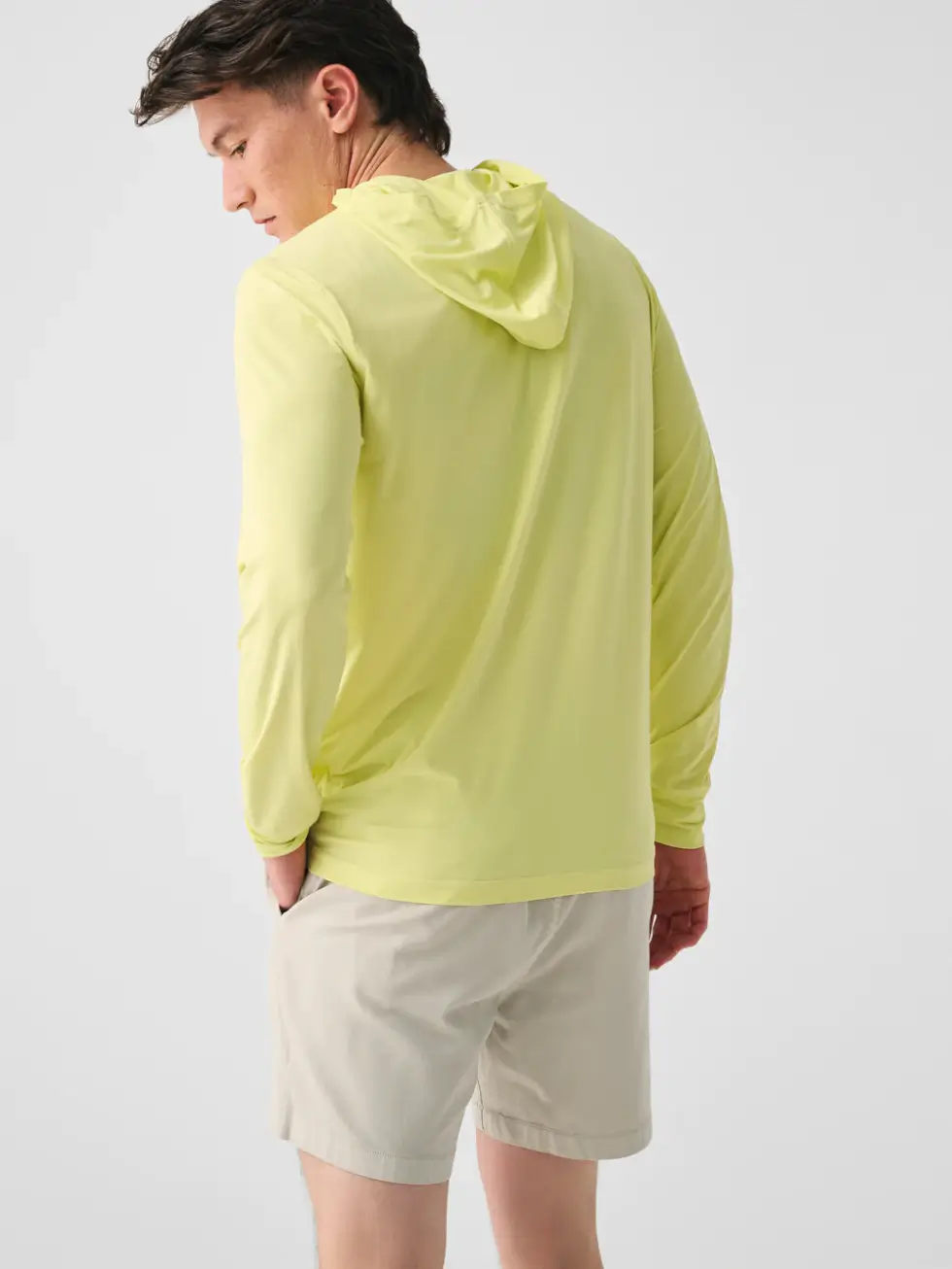 Faherty’s All Day Air UPF Hoodie makes the ideal summer wear. It can be worn as a layer over a shirt or on its own. It is available in various sizes from XS to XXL and in the attractive summery colors of Bright Lemon, Pure White, and Clear Sky.