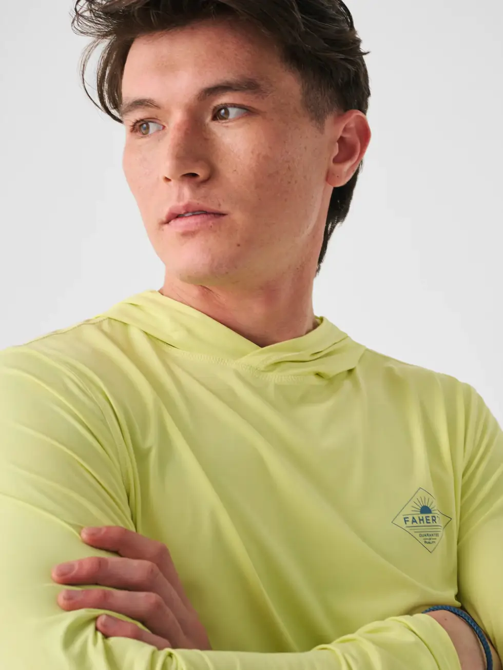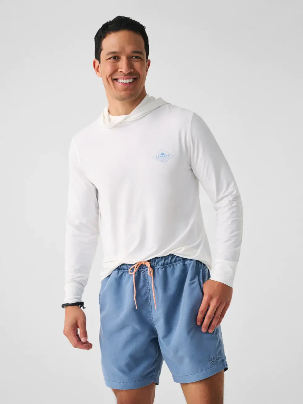 Faherty’s All Day Air UPF Hoodie is cut from a mixture of 86% Nylon and 14% Lycra to give it that smooth, stretchy, tech-knit feel and for a breathable and comfortable fit. The fabric retains its shape even after several washes. It also keeps you cool when the temperature heats up while also providing a bit of warmth when it gets a bit chilly.