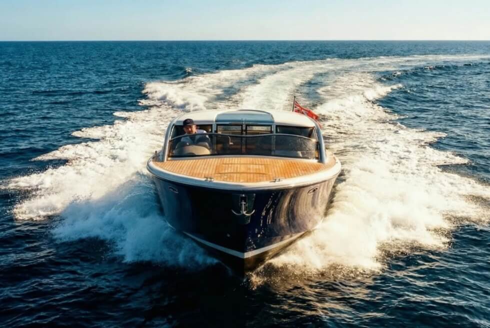 Adorned with curated hues of white and navy blue, it resembles a sleek supercar for the sea. With a length of 36 feet, a 10-foot beam, and a 6.5-foot height, it can comfortably carry up to 11 passengers. Moreover, the dimensions mean it’s compatible with most standard garages.