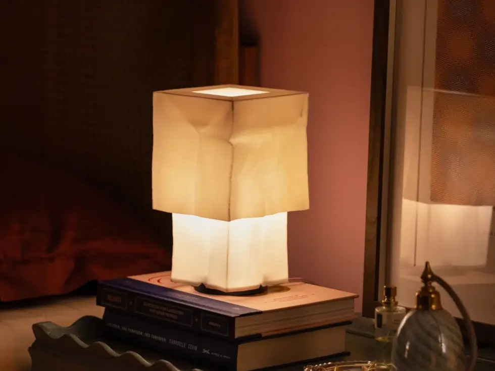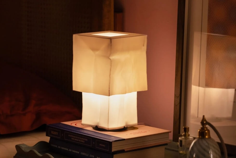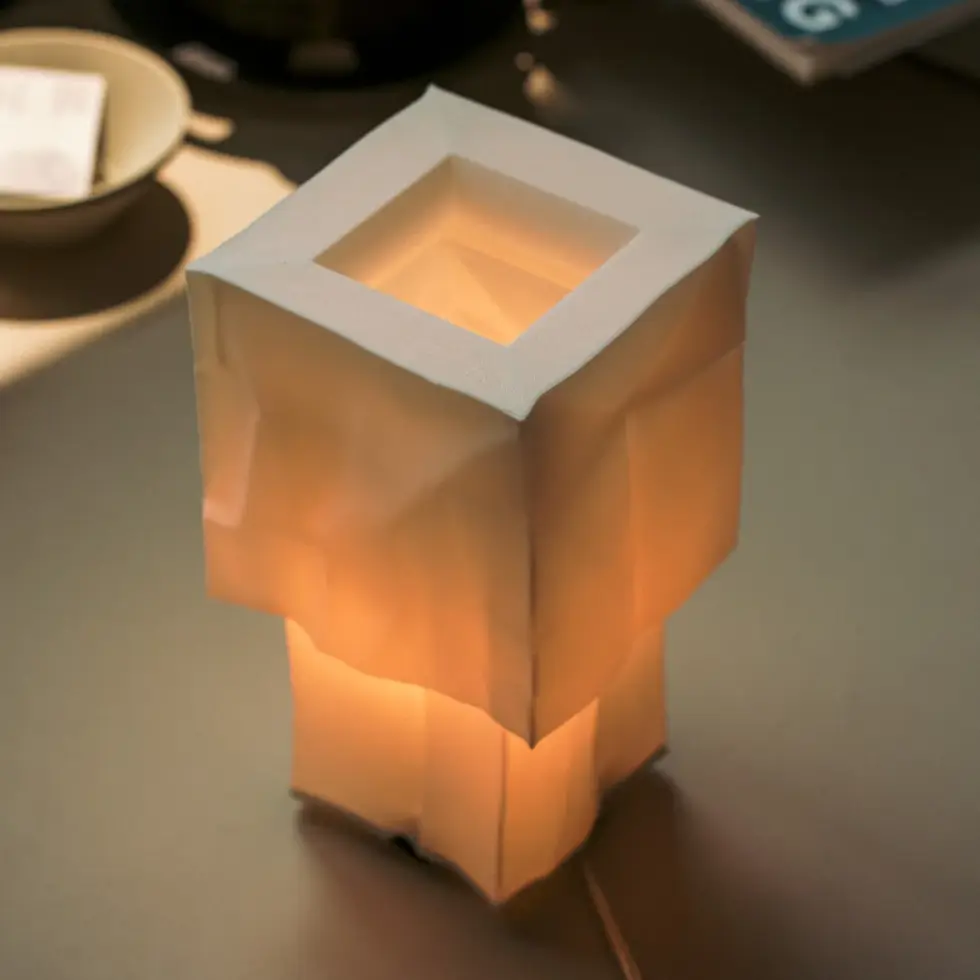 Meanwhile, the familiar crease seen from a folded and flat packed paper bag are evident on two sides of the shade. These interpretations create a lighting object that is not just useful but also whimsical and unique. It adds a playful element to any setup, be it in the dining, bedroom, or the living room.