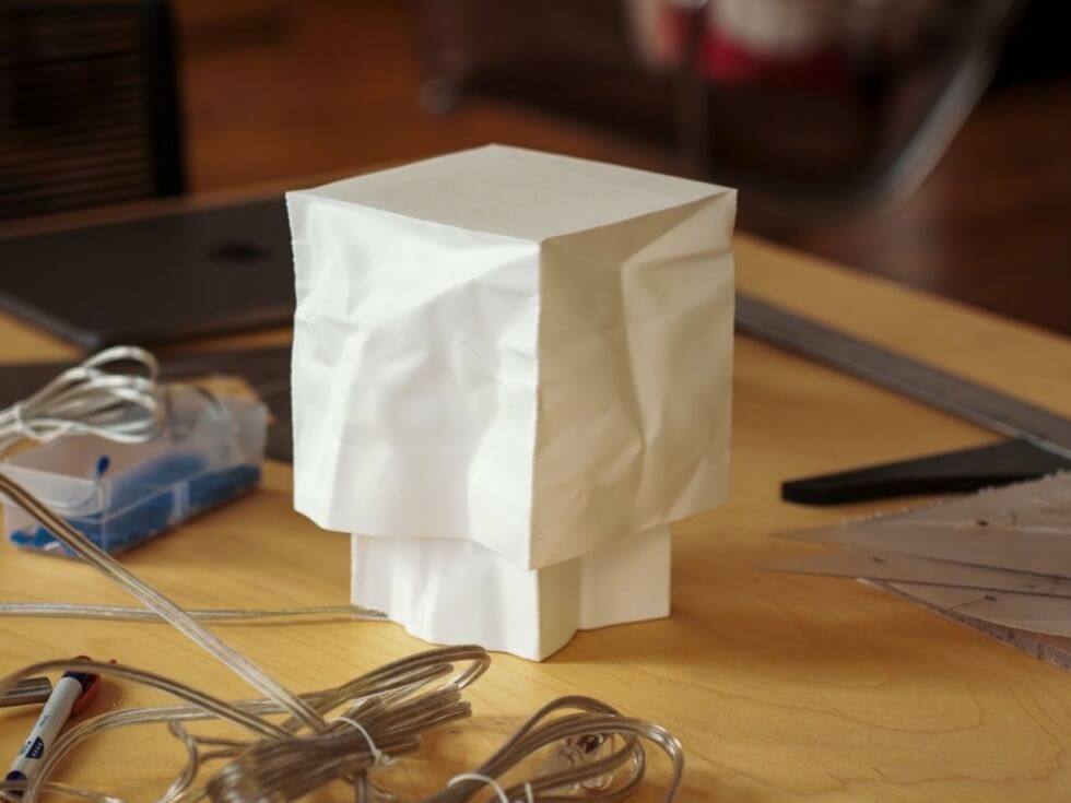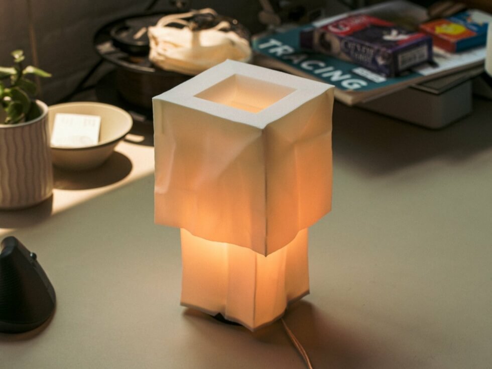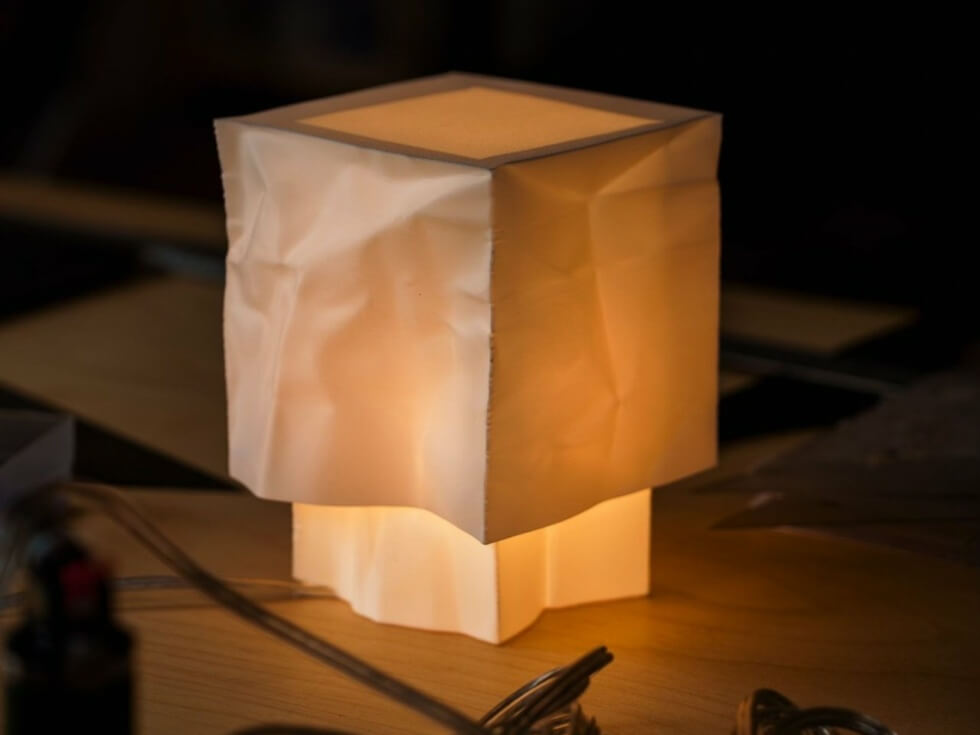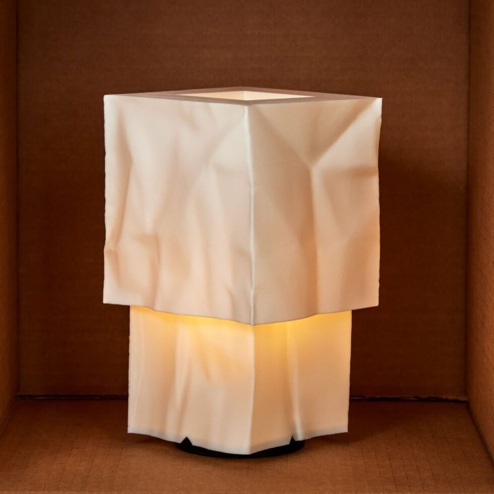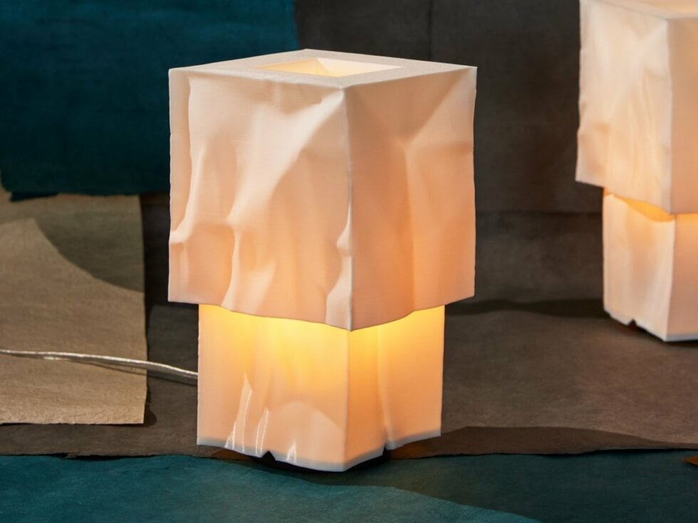 Moreover, the 3D printing process makes each made-to-order lamp unique from each other as it will have variations in texture and color. This lamp is a definite product into the exploration of paper texture as it effectively captures the creases and fluidity of a malleable form in a solid state.