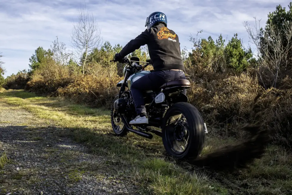 FCR Original details the removal of the original air box. In its place goes a battery holder and K&N air filters. Another noteworthy change is the rear loop with an integrated LED strip for the tail. This supports the new saddle upholstered in brown leather. Side number boards keep the negative space below the subframe out of sight.