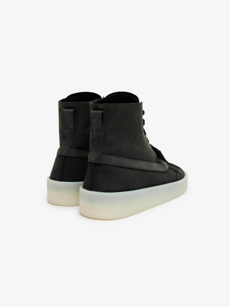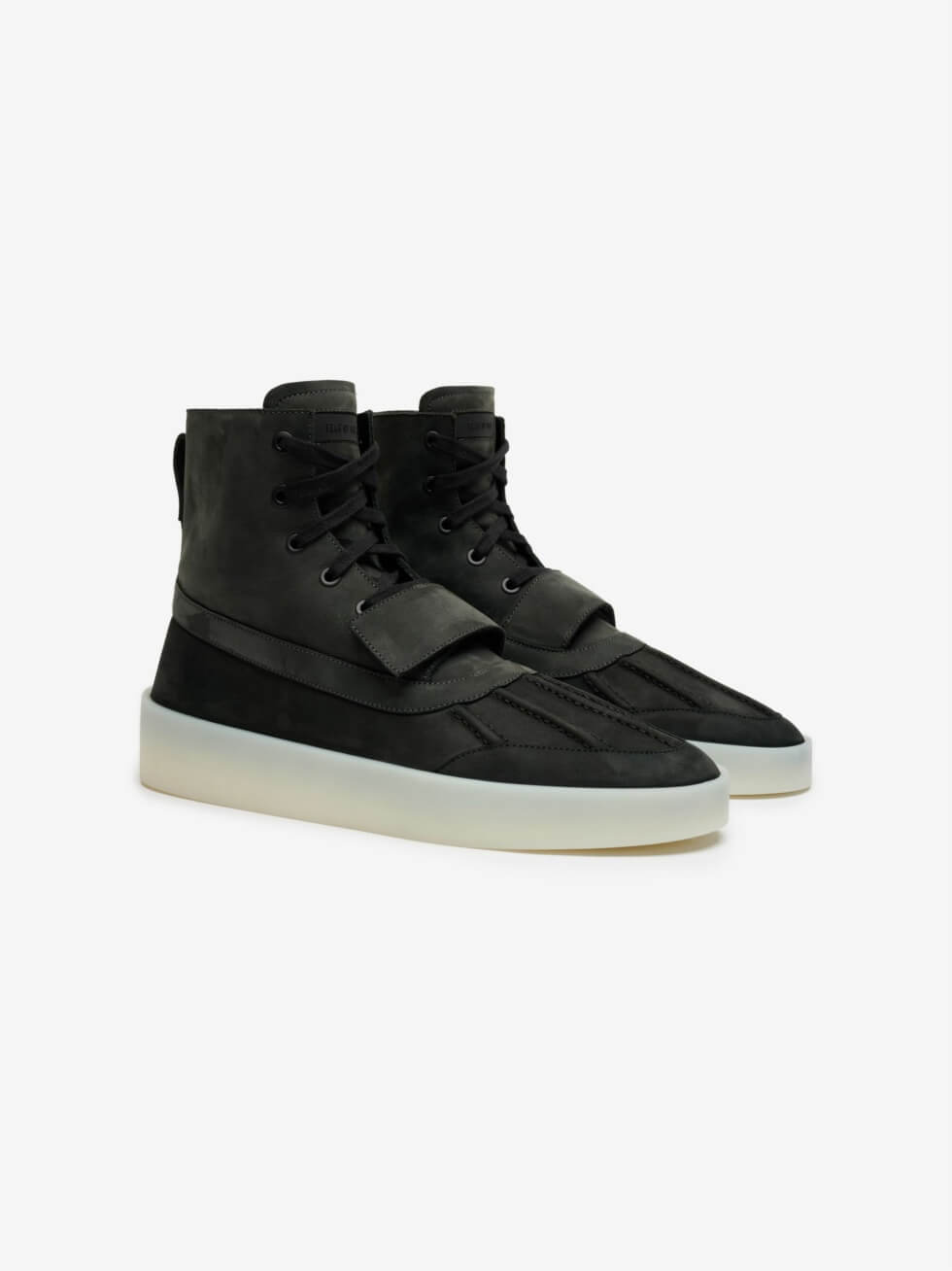 Another element they’re changing here is the omission of the chain-tread. Fear of God endows the DuckBoot with an athletic 101 sole and you can spot the brand’s logo embossed on the heel. It uses a combination lace-up closure system with a Velcro belt strap. You can get these is Black/Fango or Off Black/Black colorways.