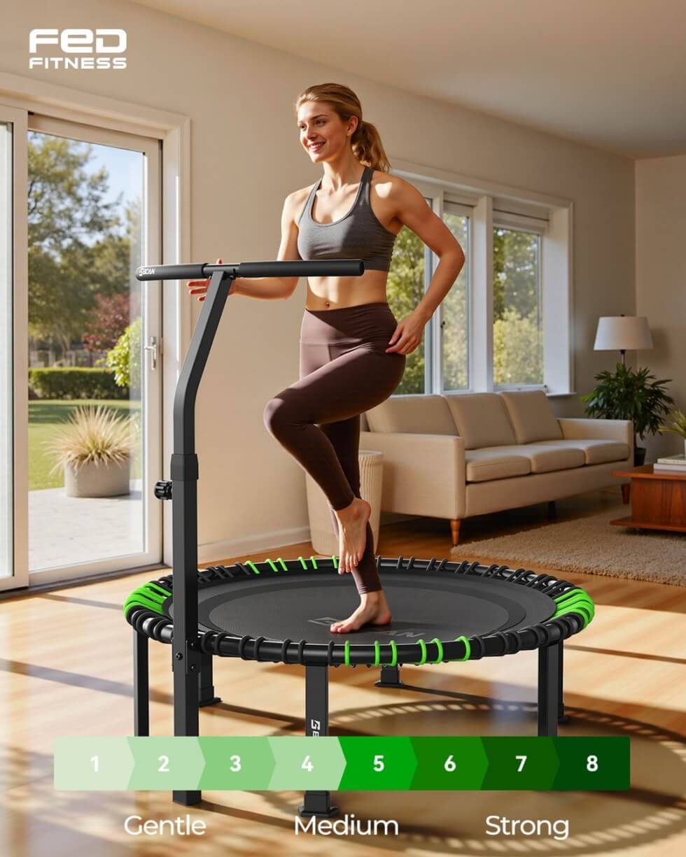 That’s exactly where theFED Fitness Bcan BT4 Foldable Adult Round Bungee Trampoline With Adjustable T-Handlebar lands: a compact, all-in-one foldable trampoline is a fun way to try low-impact cardio right in the living room, thanks to its 90% pre-assembled, one-piece frame—with the frame and bungee cords fully installed, it’s quicker to set up, more stable, and easy to store without taking up much space.