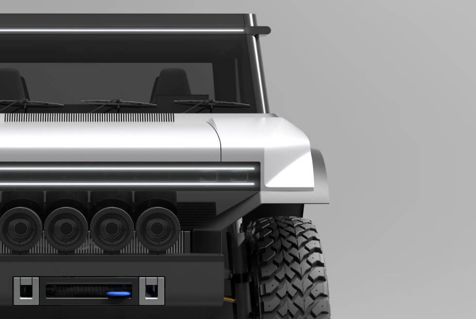 A dynamic suspension system allows the SUV to adjust the ride height on the fly. Haul cargo up to 3,306 lbs which is great for various applications. It boasts an aluminum/composite spaceframe chassis with body panels crafted out of tough fabric. Finally, The Fering Pioneer can reach a top speed of 78 mph.