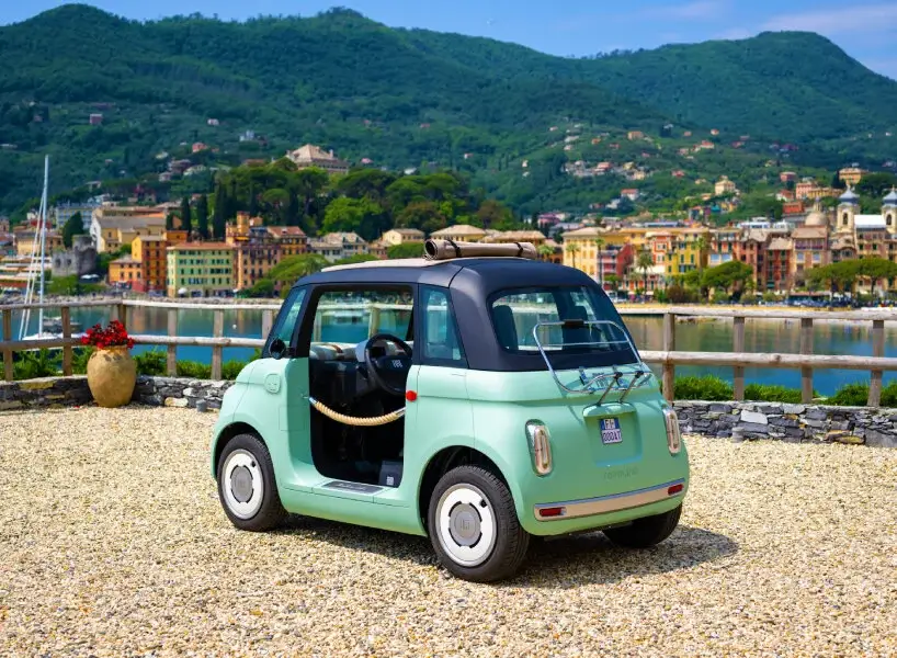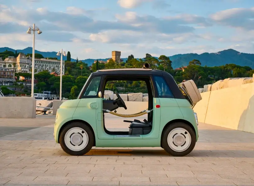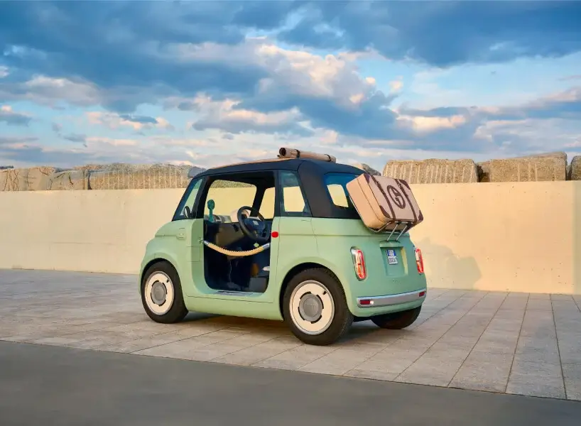 To give the vibrant shade contrast, there are chrome elements on the headlight surrounds, bumpers, rear luggage rack, and side mirrors. Furthermore, since there are no traditional doors to speak of, Fiat equips the Topolino Dolcvita with ropes on each portal. Its 5.4 kWh battery can fully recharge in less than four hours and offers a range of up to 47 miles. The top speed, meanwhile, is 28 mph.