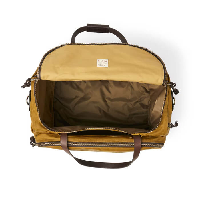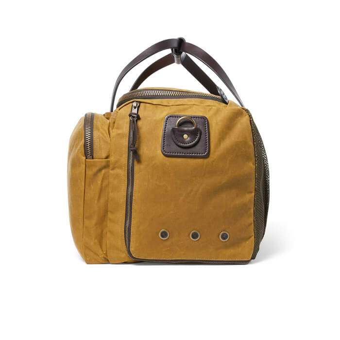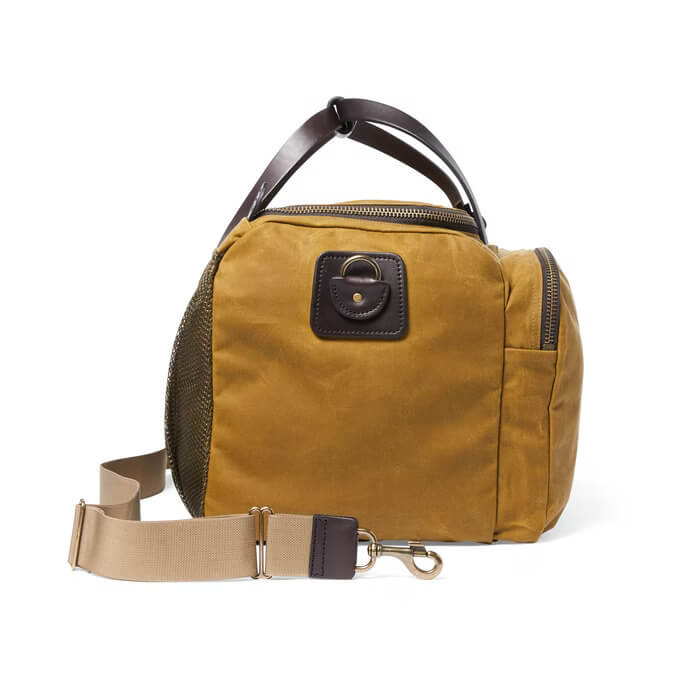 Filson’s Excursion Bag easily fits overhead compartments in airplanes and can hold just about anything you want on your trip. It can accommodate a laptop, clothes for days, flashlights, shoes, and other things you may need for your adventure.