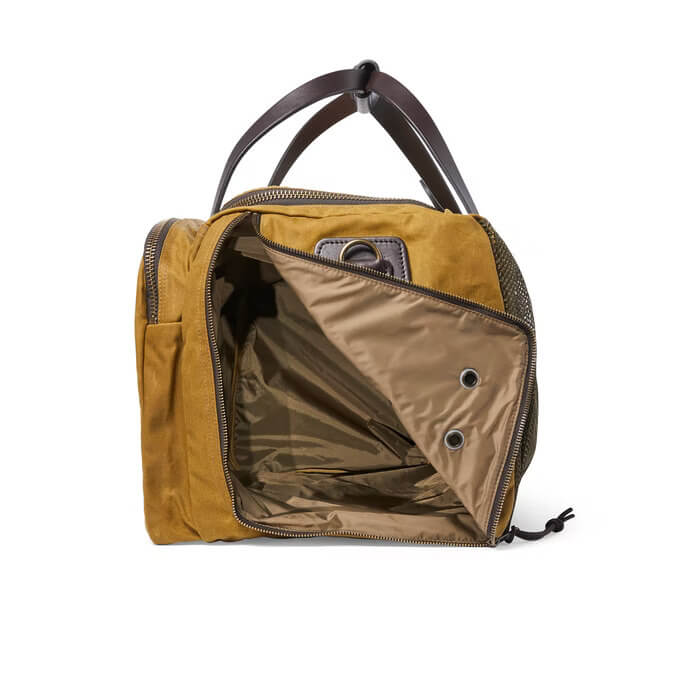 This travel bag goes anywhere with you whether you’re off on a weekend getaway to the river to the duck blind or going on a business trip.  Made from a tough and water-resistant waxed canvas, it protects your gear from rough, wet, or muddy ground. It also has a full nylon lining to further protect its contents.