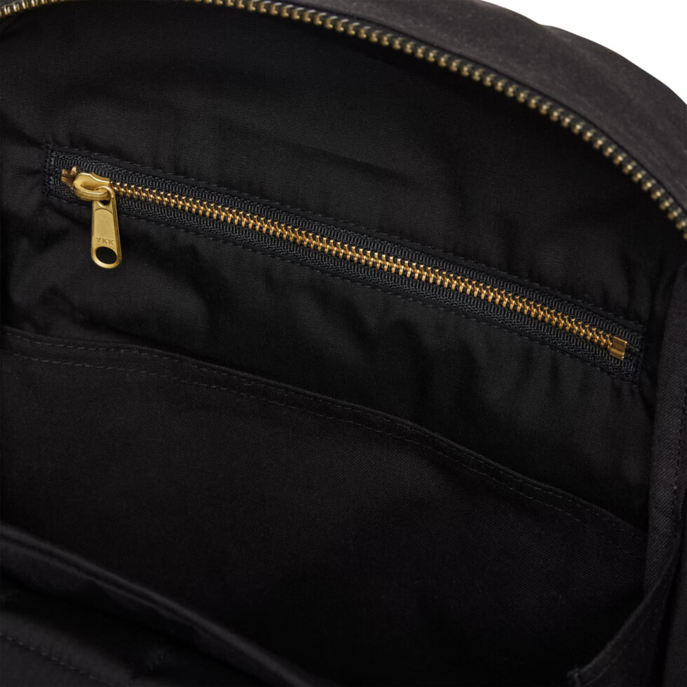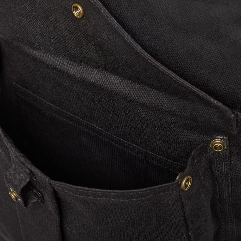 It has a spacious main compartment built with oil finish Tin Cloth to protect your gear from snow, rain, and sleet. Tin Cloth comprises a tightly-woven canvas duck that’s been thoroughly saturated with a paraffin wax formulation. This gives it its maximum water repellency. Then there’s the added structure and durability to the back panel and base coming from 2x 3 ply Rugged Twill. This is an industrial-strength fabric from the iconic British Millerain.
