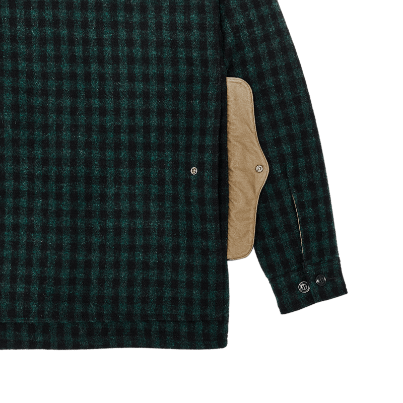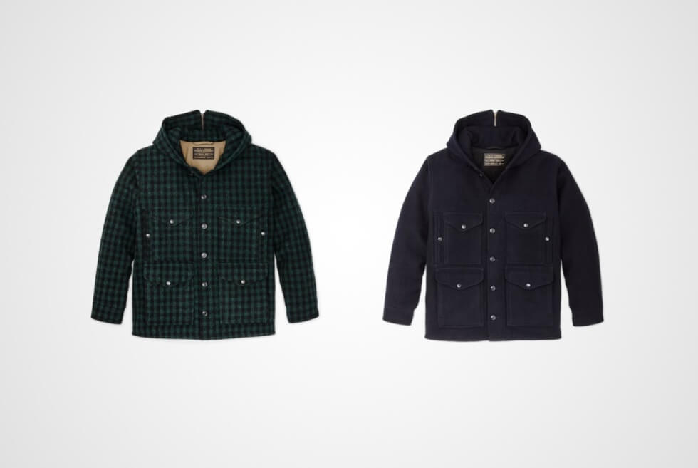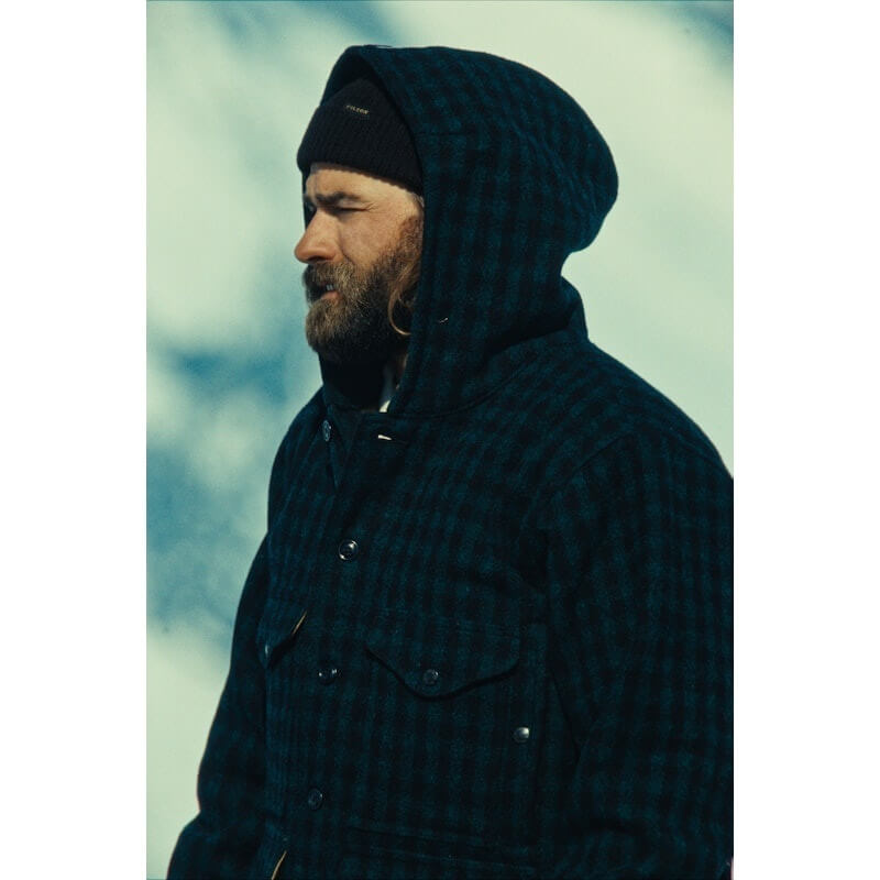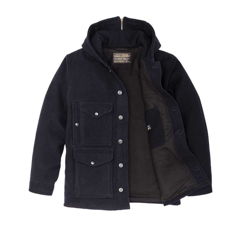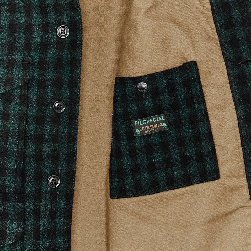 “Originally patented in 1914, the Cruiser Jacket was engineered for timber cruisers surveying ahead of logging crews. The pass-through rear pocket was where they stowed maps and survey charts, and is just as useful for bulky items such as watch caps and gloves,” writes Filson regarding the Mackinaw.