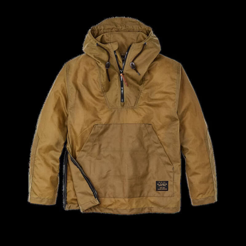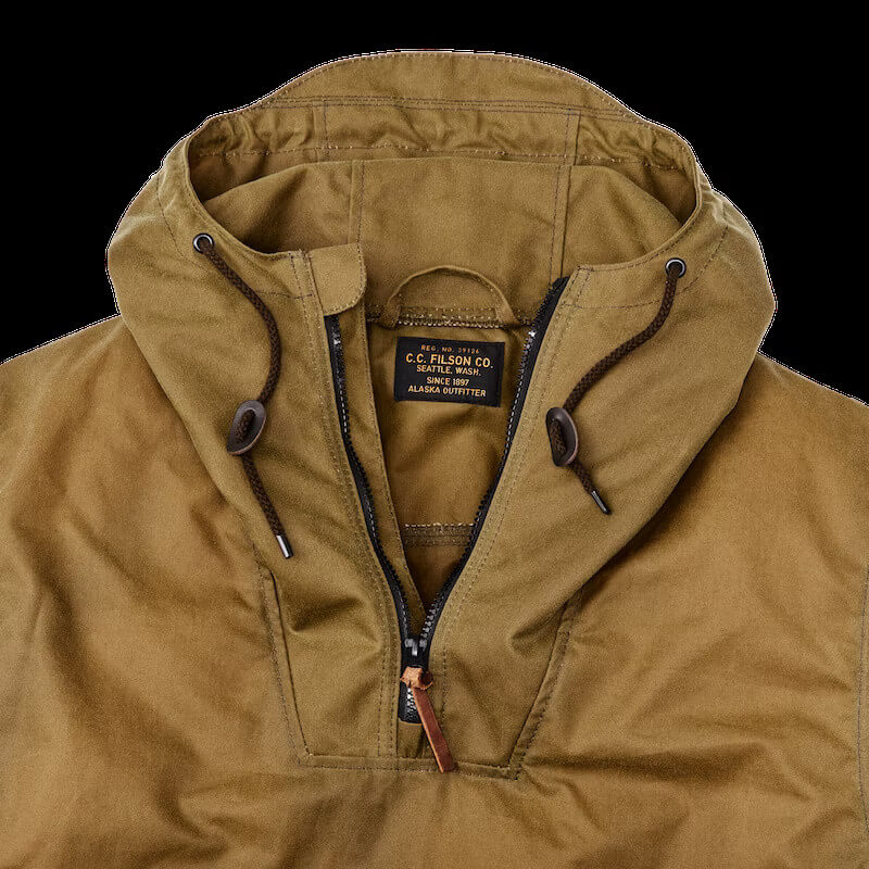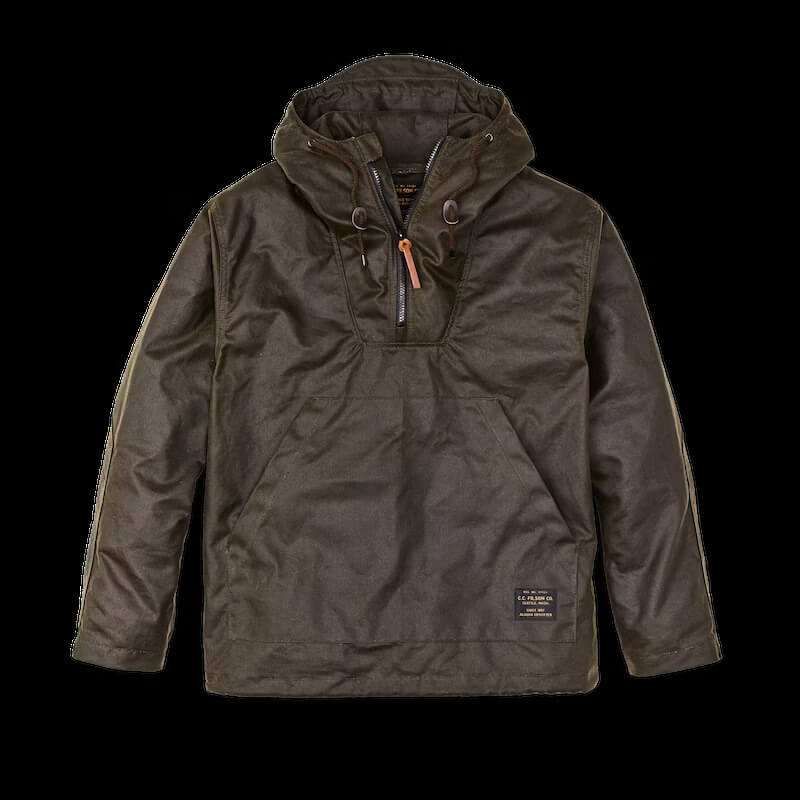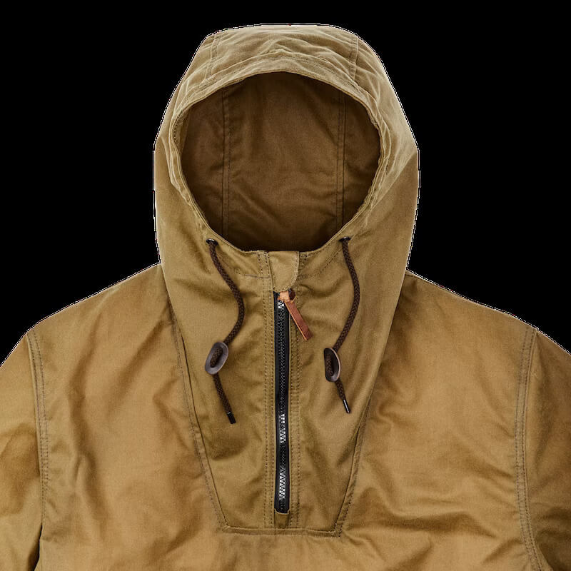 Filson’s Shelter Cloth Waxed Anorak is a modern take on the classic waxed cotton protection incorporated with a hoodie for the ultimate outdoor wear. Its roots hark back to the ancient arctic, where anoraks were constructed from the skins of seals or caribou and then coated with fish or whale oil for water resistance.