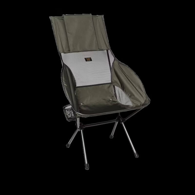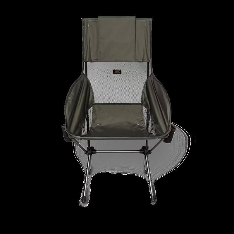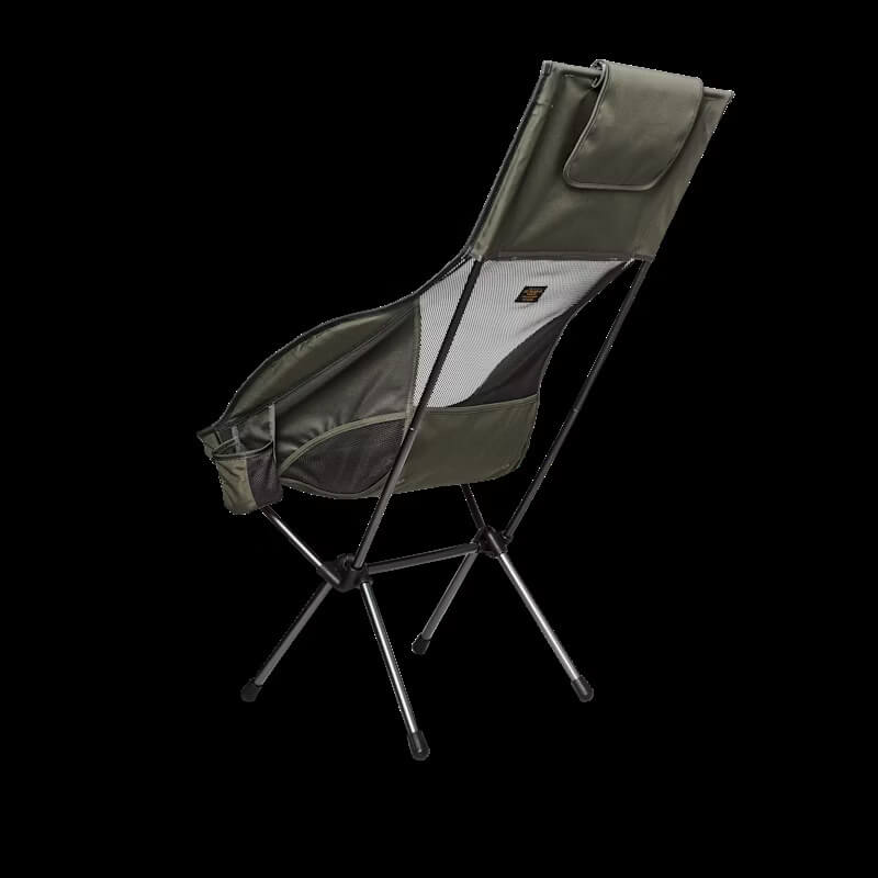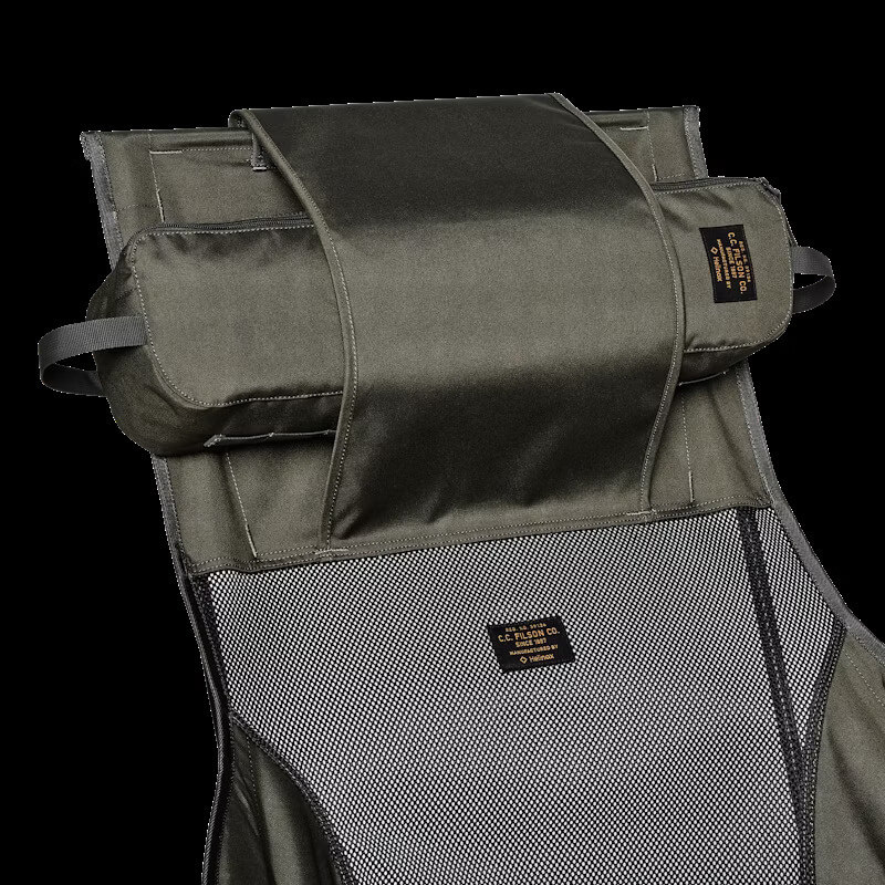 The Filson x Helinox Savanna Chair comes integrated with mesh panels for breathability or ventilation in hot weather. Likewise, you can stuff a jacket or towel on its built-in flap to convert it into a pillow. This way, you can sit back and relax in comfort like being at home while outdoors.