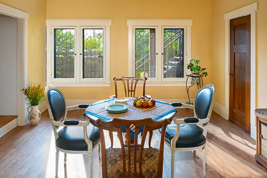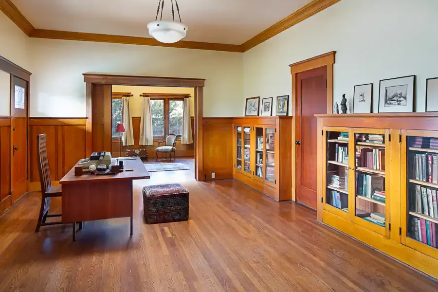 Some of the notable features within the interior spaces are an office/library, a wrap-around second-story balcony, a breakfast room, an artist’s wing, and more. Being inside the Finis E. Yoakum House is akin to time travel as the vintage motif highlights the architectural design and decor of the time.