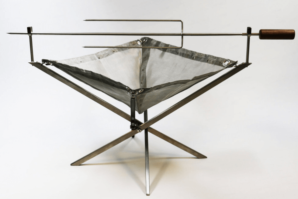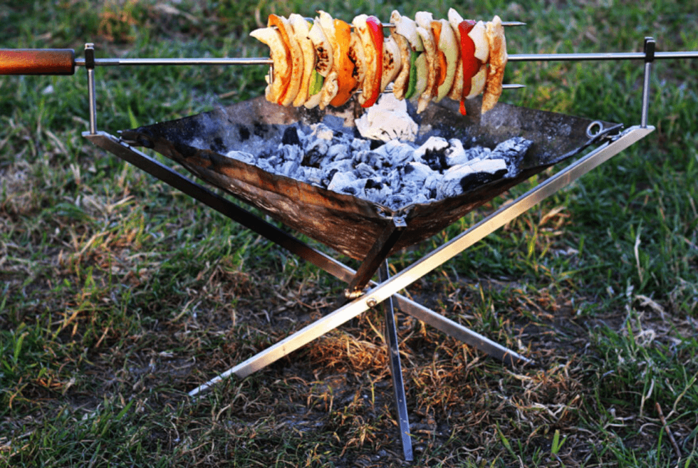 We’re looking at a combo gadget that primarily functions as a firepit but can turn into a wood or charcoal grill/roasting spit in seconds. This makes it a splendid piece of outdoor equipment that can quickly adapt to your needs. Unlike purpose-built firepits and grills which take up a lot of space, it is the ultimate alternative that promises portability and durability.