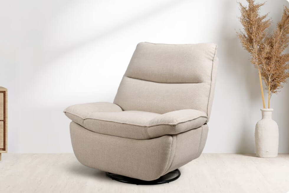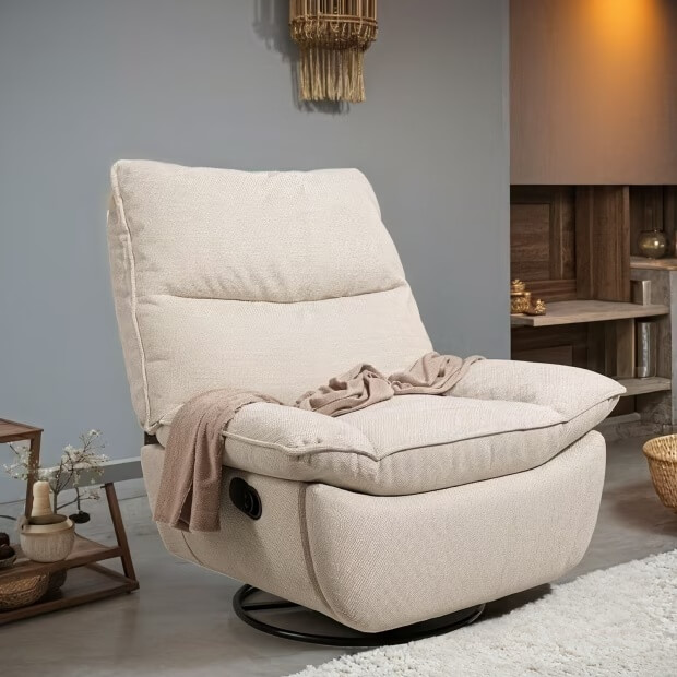 The Lotus XC6 lives up to the very definition of its type of furniture with a backrest that can recline up to 145 degrees. Likewise, a footrest automatically deploys to provide full-body support. A sturdy round base allows it to swivel 360 degrees and a robust rocking mechanism makes it feel like you’re on a cloud.