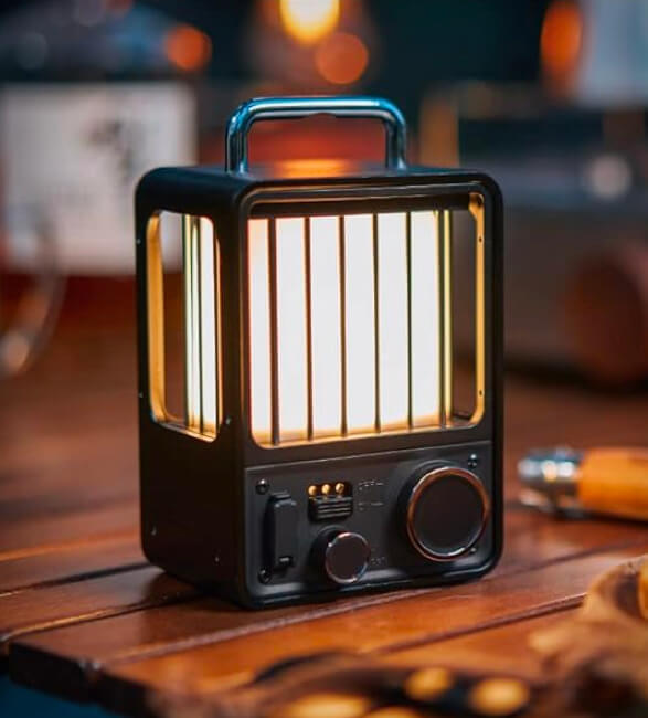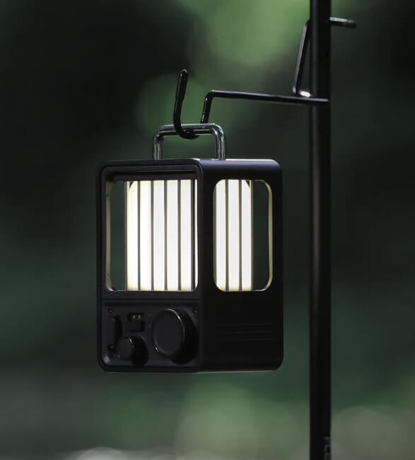 This lamp features a robust and outdoor-ready construction. It features 64 CNC machined metal parts and is made from a combination of aluminum alloy, stainless steel, ABS plastic, and PC in a matte frosted finish that relive classic retro elements. At first glance, it is reminiscent of classic TV designs with their toggle buttons used to choose the channels and to power the TV on/off.