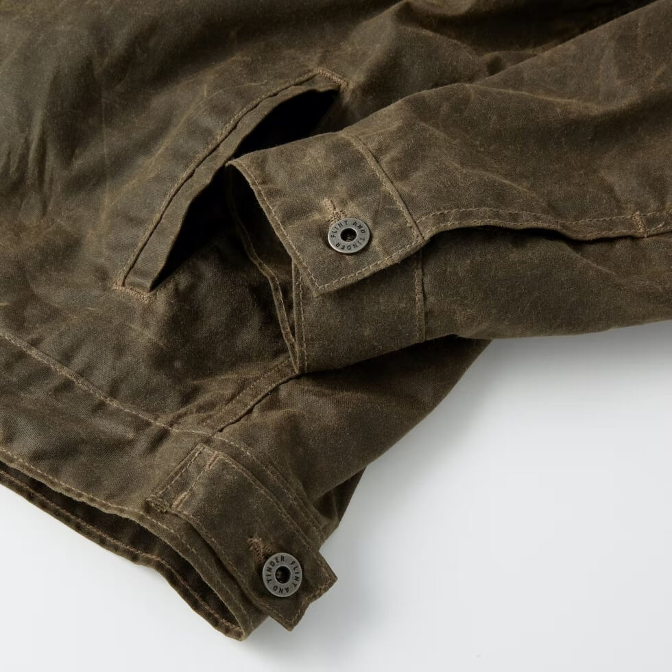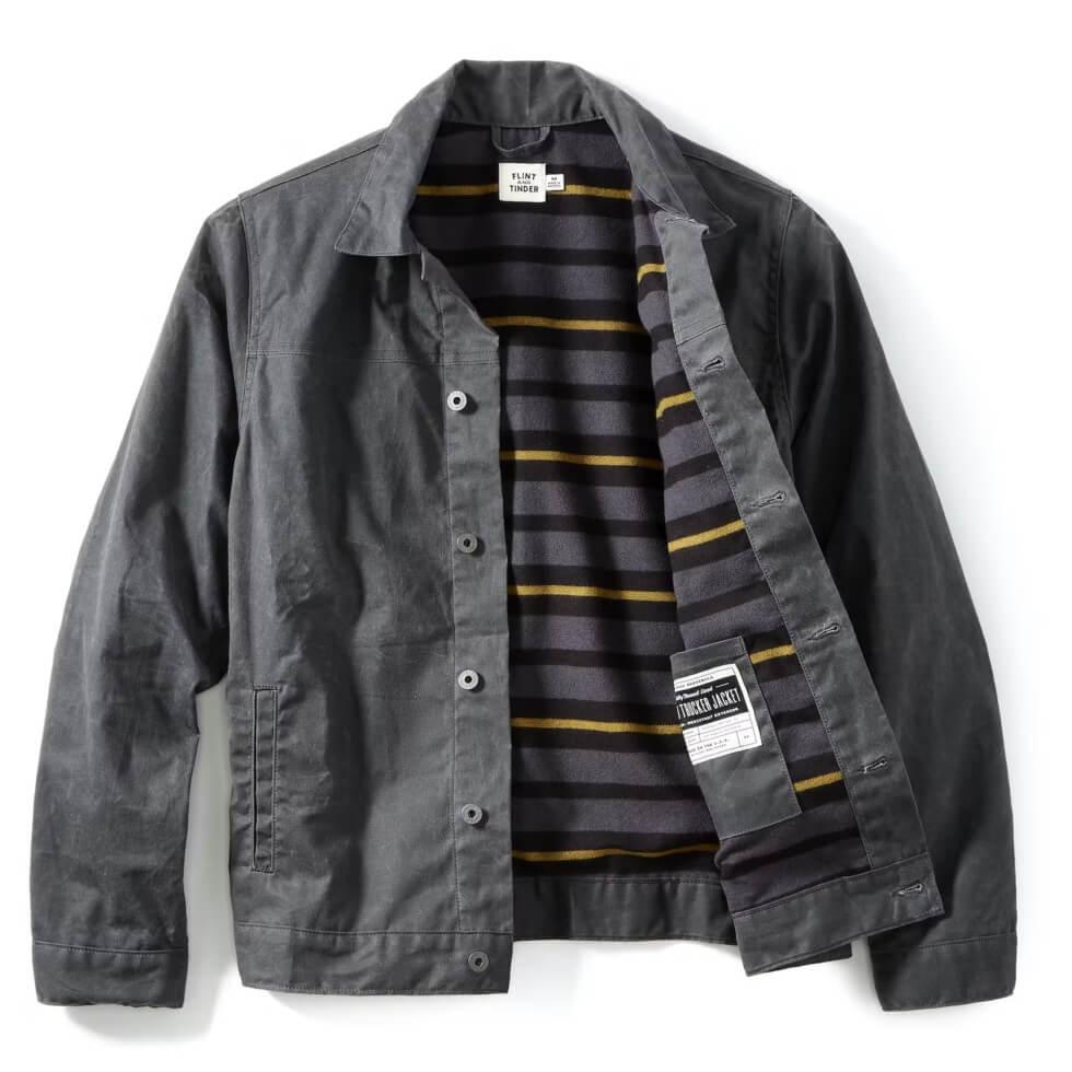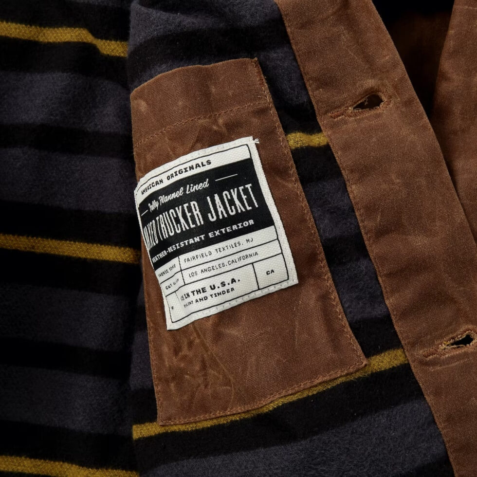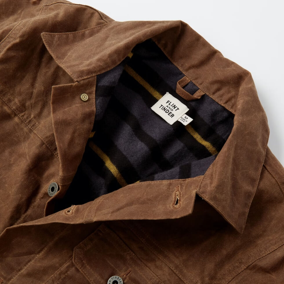 Your Waxed Trucker Jacket is a way to fight back the cold when a warm beverage or a sip of whiskey is not available. Flint and Tinder uses weather-resistant Martexin 7 oz. sailcloth sourced from a supplier in New Jersey. Huckberry likens it to “finely tanned leather” and “selvage denim” which ages finely.