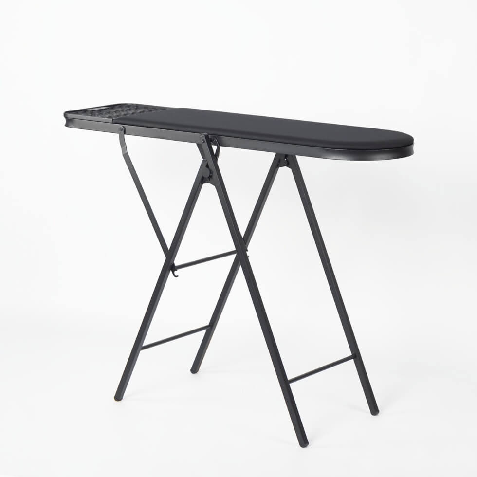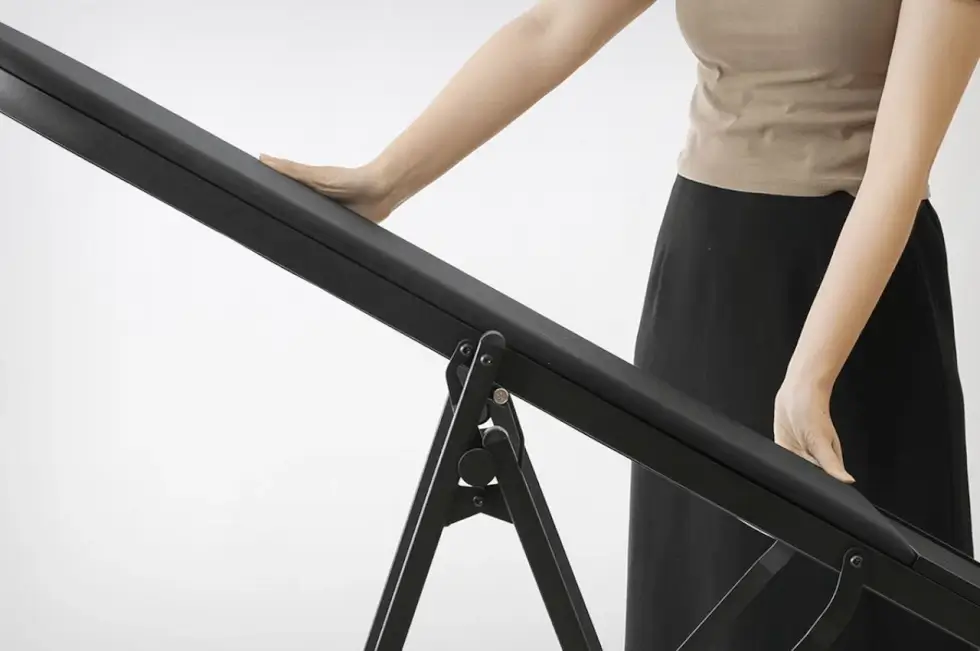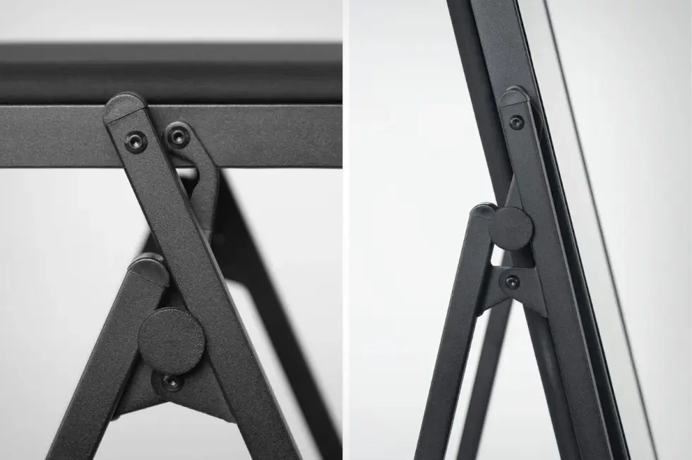 The team then designed a structure with an adjustable span. This mechanism allows the board to effortlessly adjust its span and transition between its two functions with ease. A metal attachment at the back allows the frame to seamlessly flip and remain stable during use, whether you’re crisping an attire or checking out your outfit in the mirror.