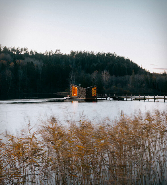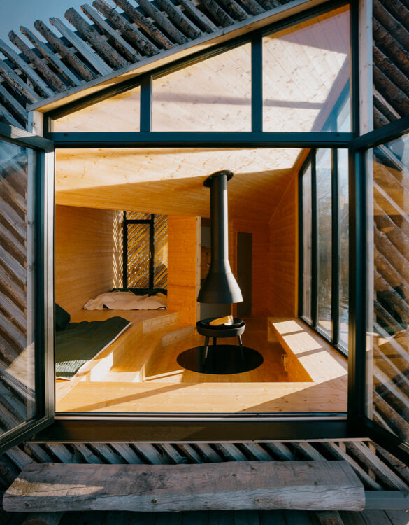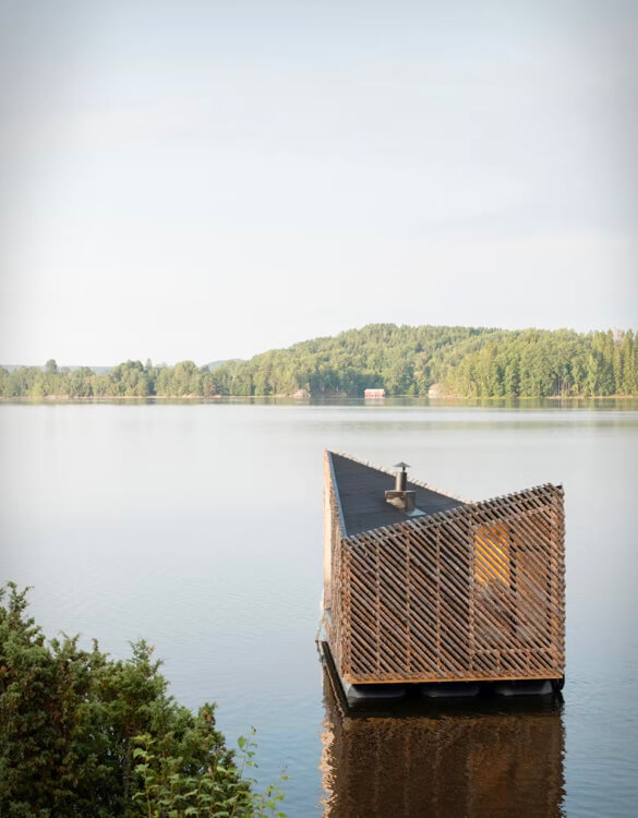 Together with the Halden Canal Regional Park, STRÅ co-founder Anders Byng Strøm and Laureen Putzolu of Studio OSMA designed this on-water accommodation to introduce newcomers to the area’s natural beauty and rich logging history.