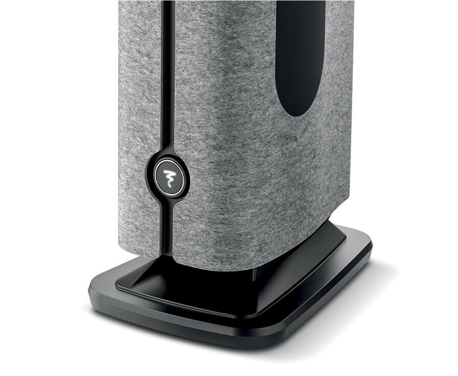 Aside from the Focal and Naim companion app, the DIVA UTOPIA is compatible with voice assistants like Siri and Google Assistant. Focal is adorning these bad boys with floating Grey Felt panels. Equally notable, its removable covers protect the bass speakers and flank the illuminated brand logo at the front.