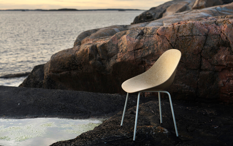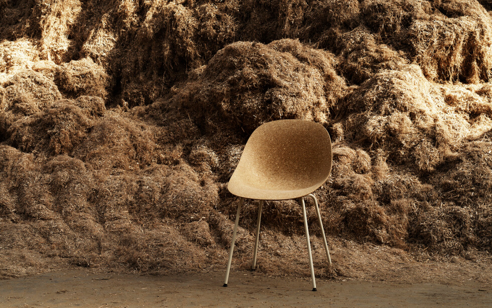 Danish design studio Foersom & Hiort-Lorenzen has teamed up with furniture brand Norman Copenhagen to introduce a collection of plant-based chairs called the Mat Chair. There are two chairs with shells made from different materials.