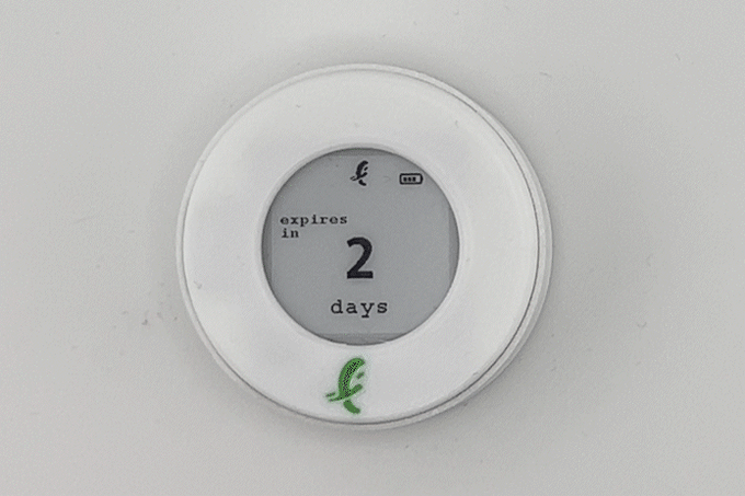 It’s a leftover food tracker that counts down the days when food will expire. It works with a companion app, where you look up the type of food and choose from USDA’s expert recommendations on expiration dates. Then you transmit the data to the tracker via Bluetooth.
