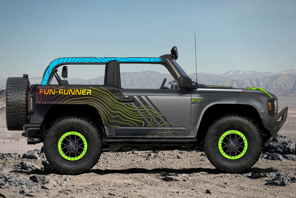 Among all the machines in the preliminary showcase, what stood out for us was that with tracks instead of wheels. This bespoke build takes a 2021 Bronco Badlands and equips it with the means to traverse ice and snow. Meanwhile, the rest are mostly aesthetic but pack enough upgrades over the stock trim. At least the kids have a ride-on replica to enjoy, while we wait for our full-scale toy to arrive.