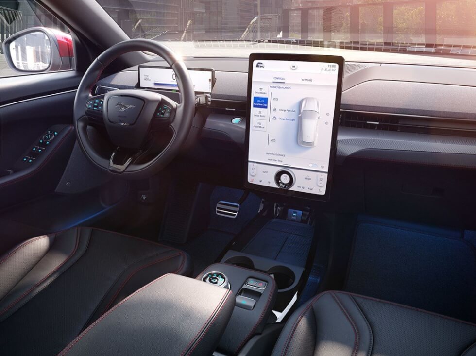 The Ford Mustang Mach-E runs on a 75.7 kWh lithium-ion battery. The standard trim produces 255 horsepower with 306 lb-ft of torque with a range of 230 miles. Meanwhile, the dual-motor variant manages up to 429 lb-ft of torque, but the range drops down to 210 miles. This five-seater is a capable all-electric SUV with a comfortable cabin minus the rumble of a combustion engine. Aside from the plush leather upholstery, another notable element is the 15.5-inch infotainment display. It supports Apple CarPlay and Android Auto. Entertainment is likewise remarkable with a 10-speaker Bang & Olufsen audio system.
