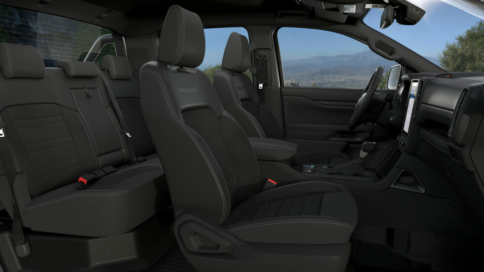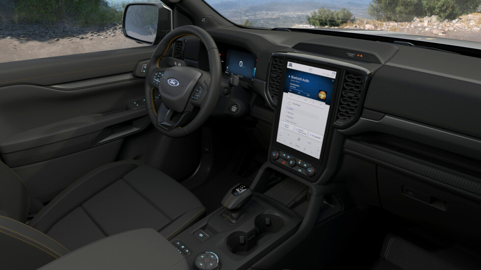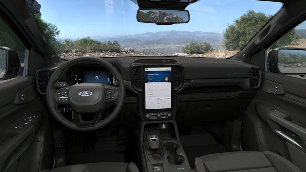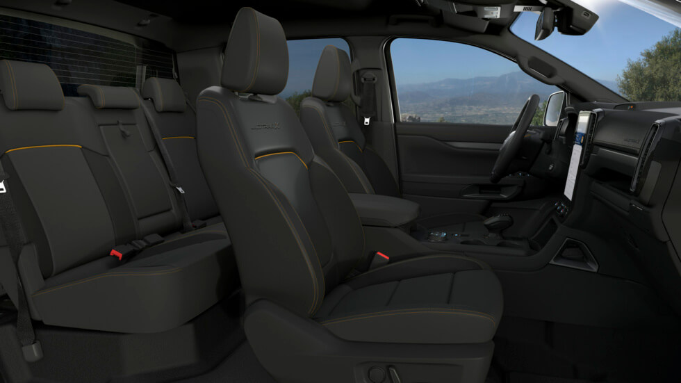Other tweaks include Bilstein shock absorbers, bolstered power steering, and steel skid plates. Aesthetically, you can easily identify the Ranger Wildtrak X via the black emblem, bumpers, grille surround, wheel arches, and 17” alloy rims. As for the cabin, it sports suede elements and orange stitching.