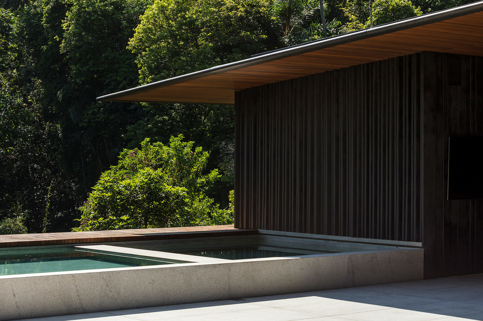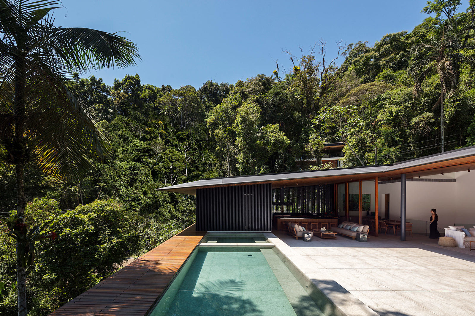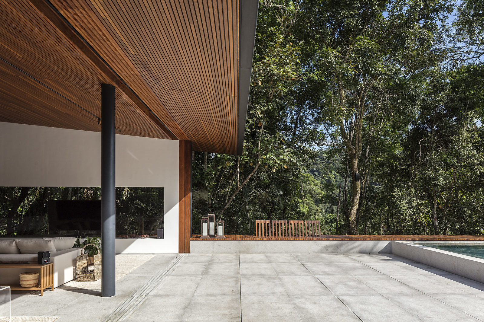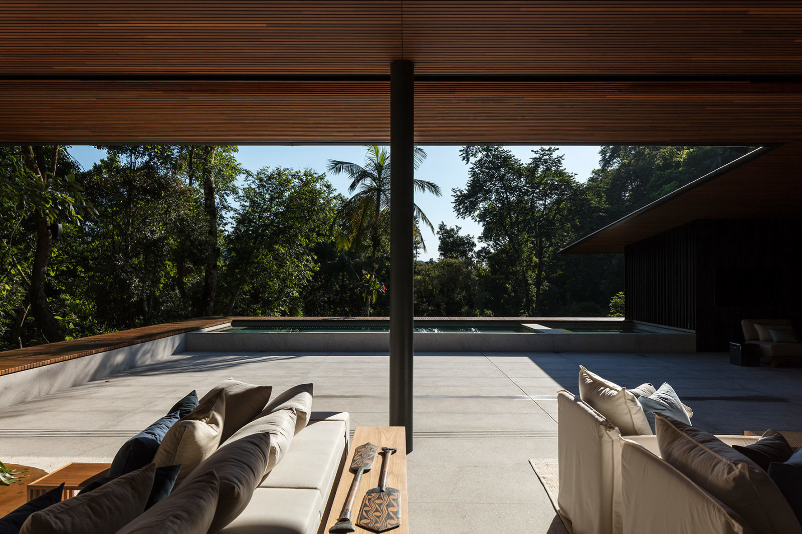 You’ll find here an abundance of glazed doors, sliding open to fetch you from the main living area toward a large outdoor terrace for open-air living. Open-air living might be too on the nose in describing a space that resides in the forest, but that’s a small blemish of semantics. And, really, how else might it be described? There’s lush vegetation everywhere. And it’s around you. Open-air living sounds just right.